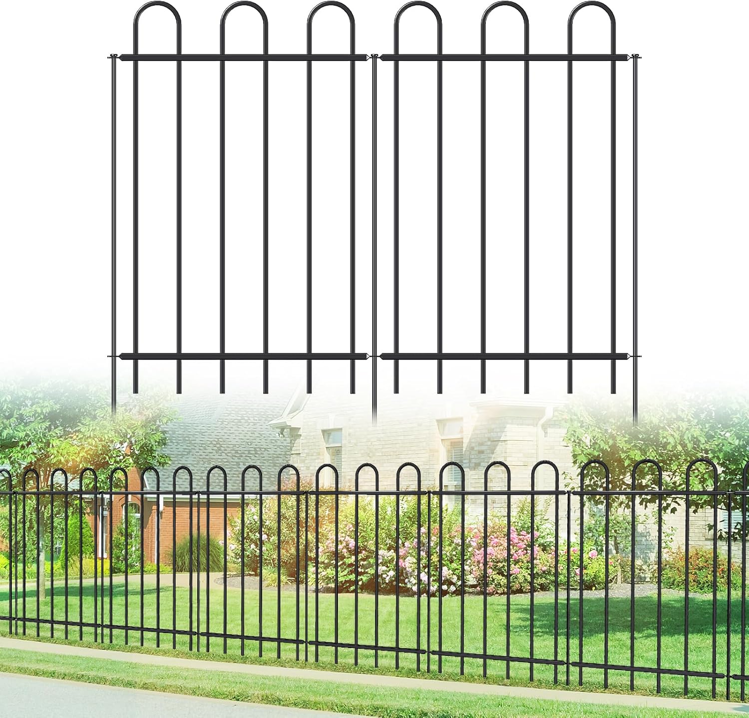 - STURDY STRUCTURE: The whole metal fence panel are welded by high quality steel tube, the structure is very sturdy. The stakes can be extended pretty far into the ground giving fairly steady stand, these no dig fence panels are rustproof by black powder coating finish and durable for outdoor yard fencing use, it works perfect as a garden fence border.
