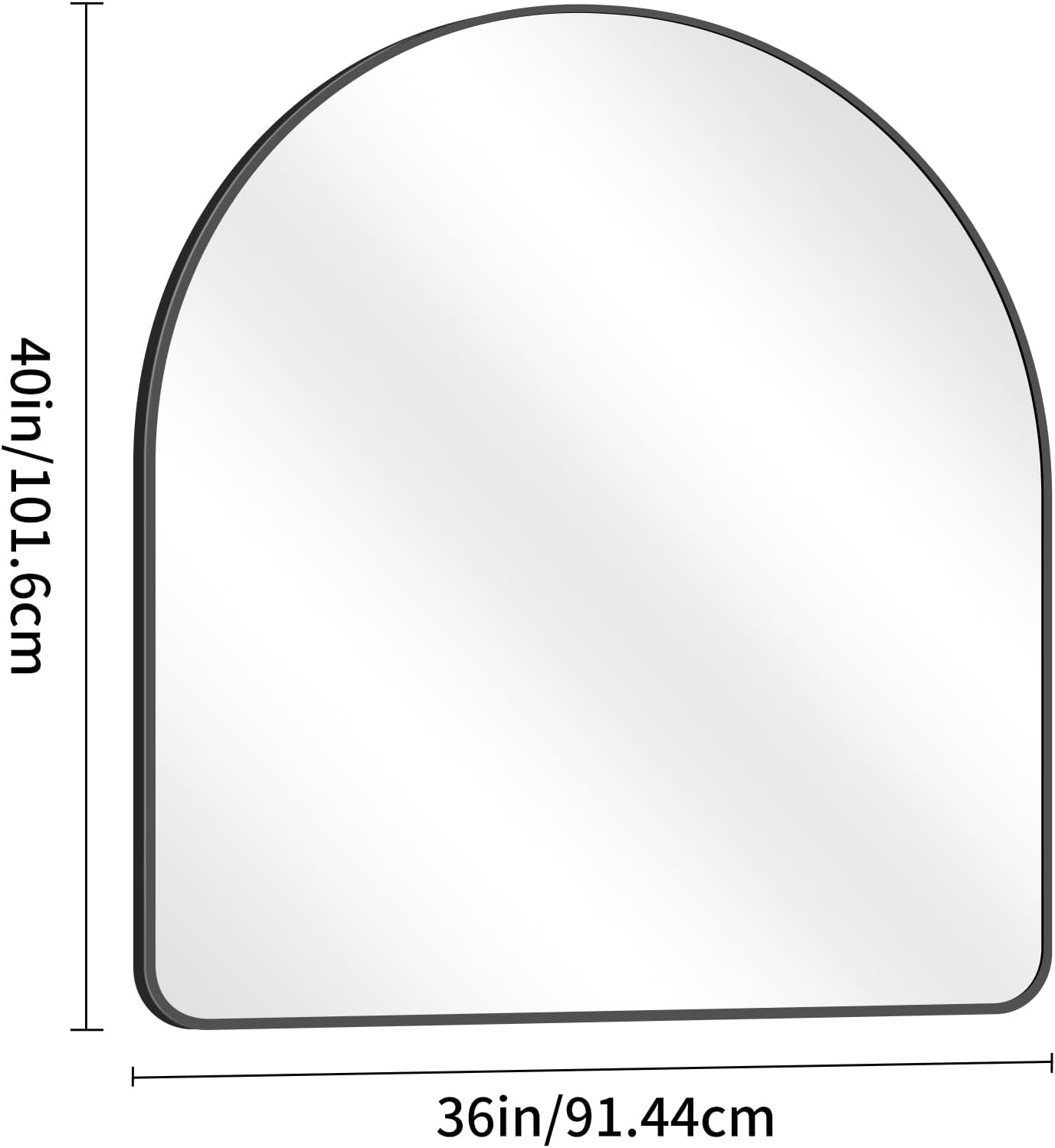 Arched Bathroom Mirror, 36"x40" Black Arched Mirror for Bathroom, Wall Mounted Mirror, Black Vanity Wall Mirror w/Metal Frame for Bedroom, Entryway, Living Room, Vertically Hanging