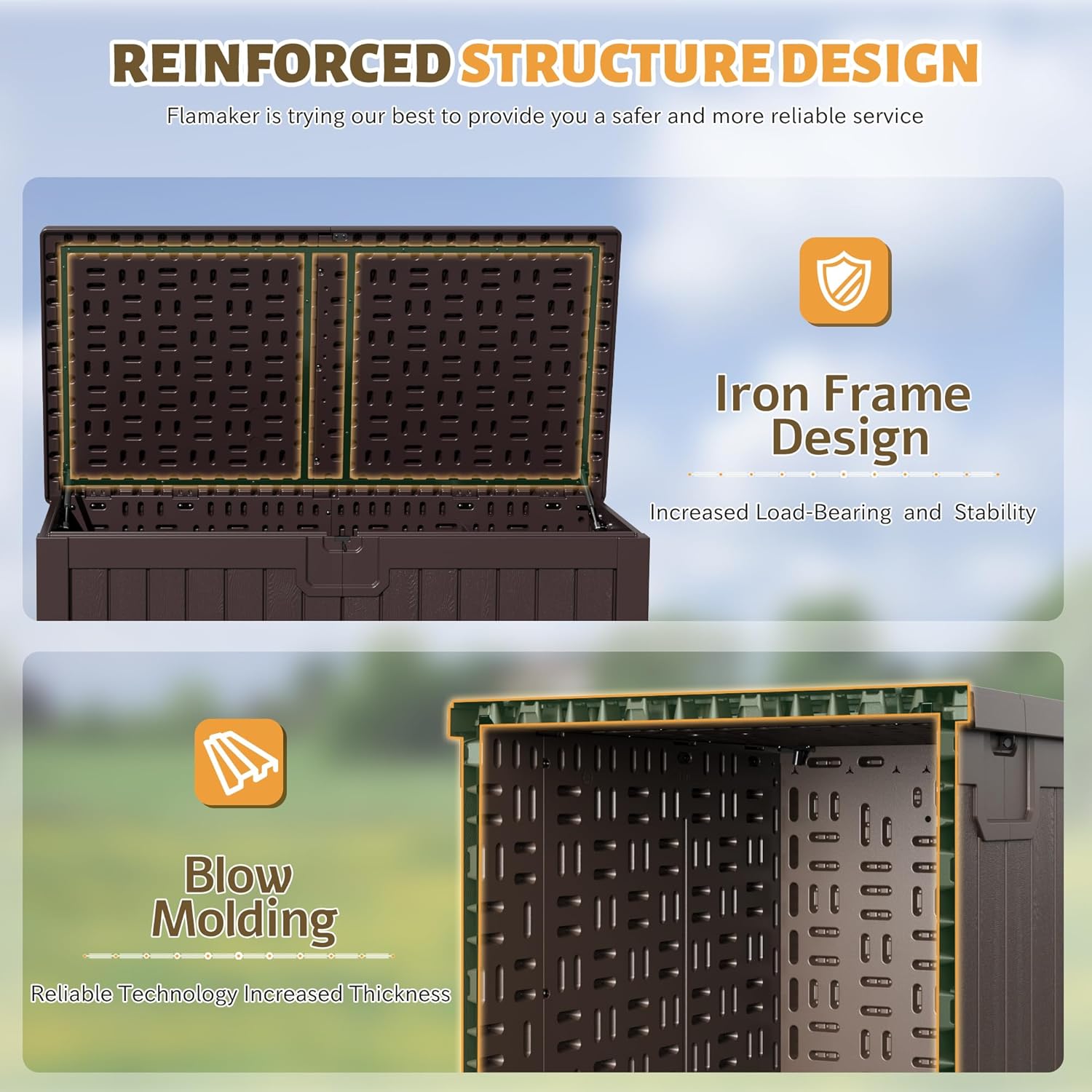 - [As a Seat] Flamaker’s large outdoor storage deck box, not only guarantees the storage capacity, but can be used as a seat, which can be used by up to 2 people