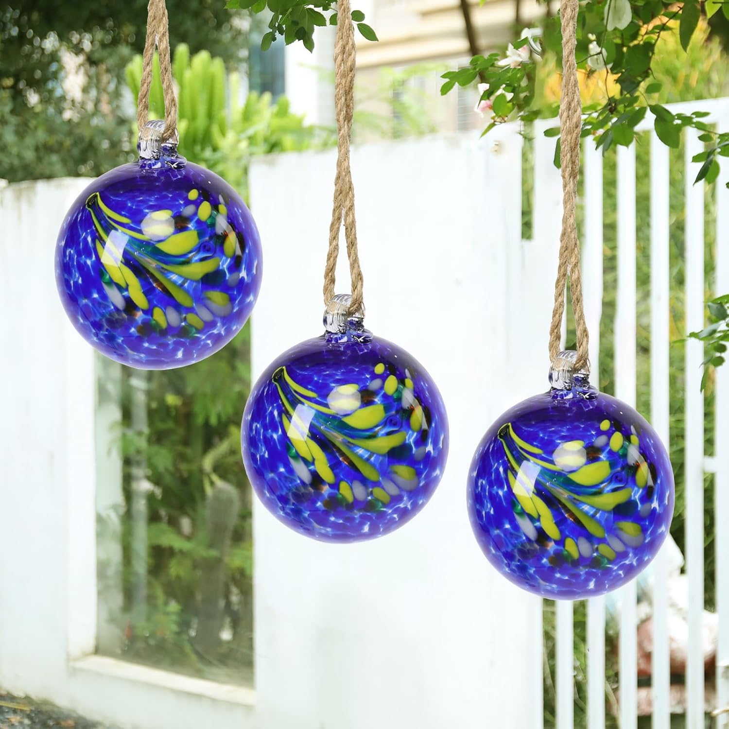 - 【Outdoor Garden Decor】Blue glass ball are a mix of blue swirl, each of hanging glass gazing ball is handmade by our experienced and professional craftsmen, making every piece unique in color and shape