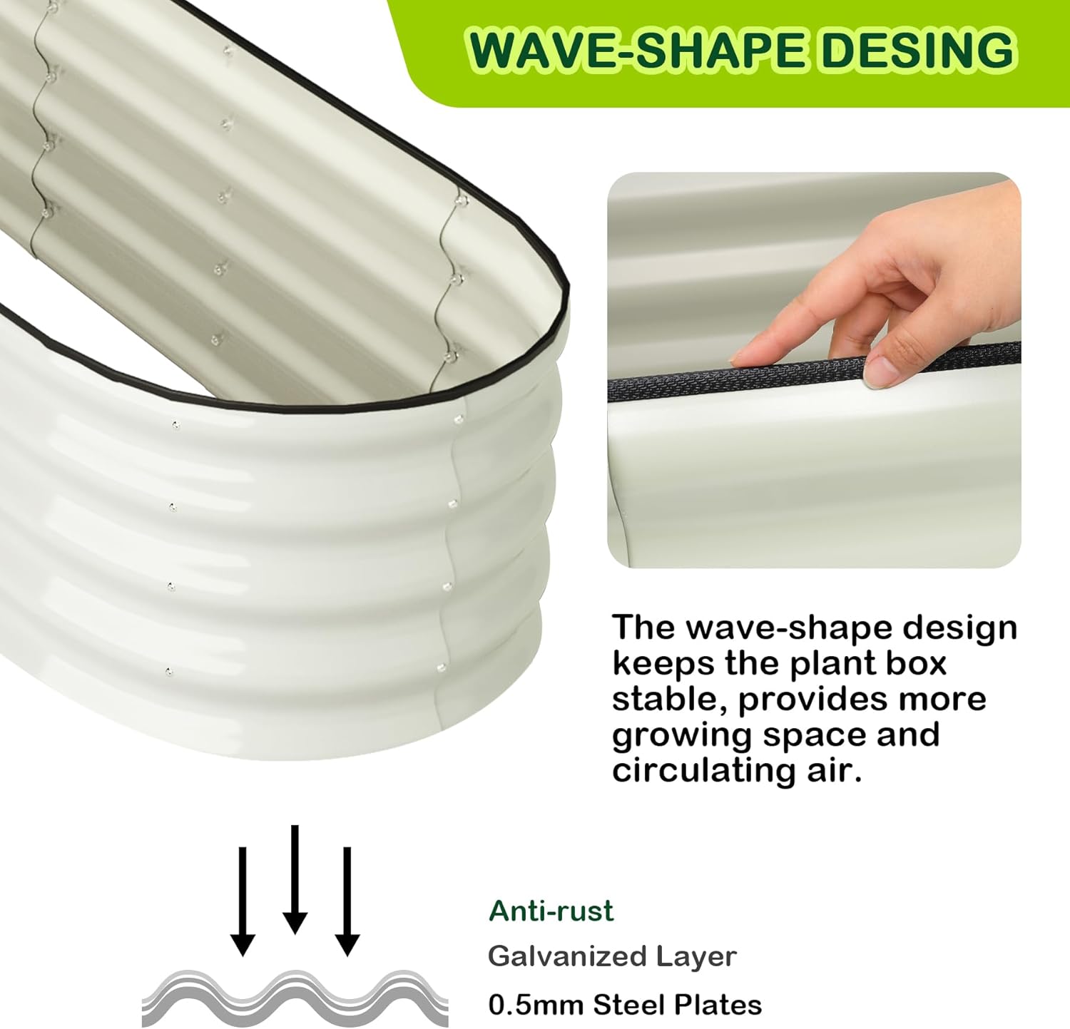 - π³ Unmatched Stability: Crafted with 0.5mm thick overlapping galvanized panels, reaching up to 1.8mm at the seams, our raised garden bed provides excellent strength and stability. The integrated screw fastening edge and unique oval form ensure it remains solid and secure, even when fully planted.