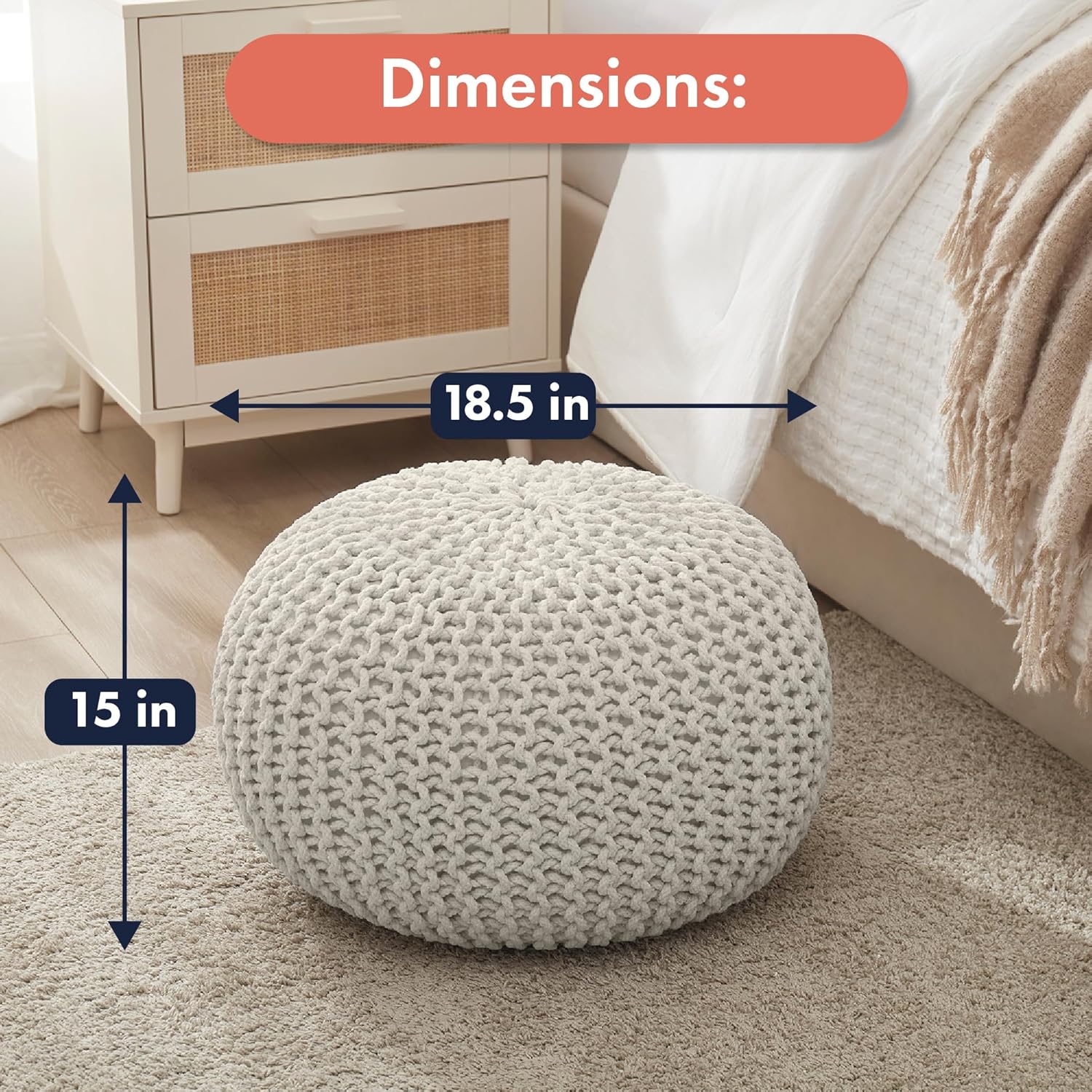 - 100% COTTON CORD: Enjoy the exceptional softness and lasting durability of our pouffe, meticulously crafted from 100% cotton. The material offers a comfortable place to rest your feet or sit, making it a perfect blend of style and practicality to enhance your daily comfort.
