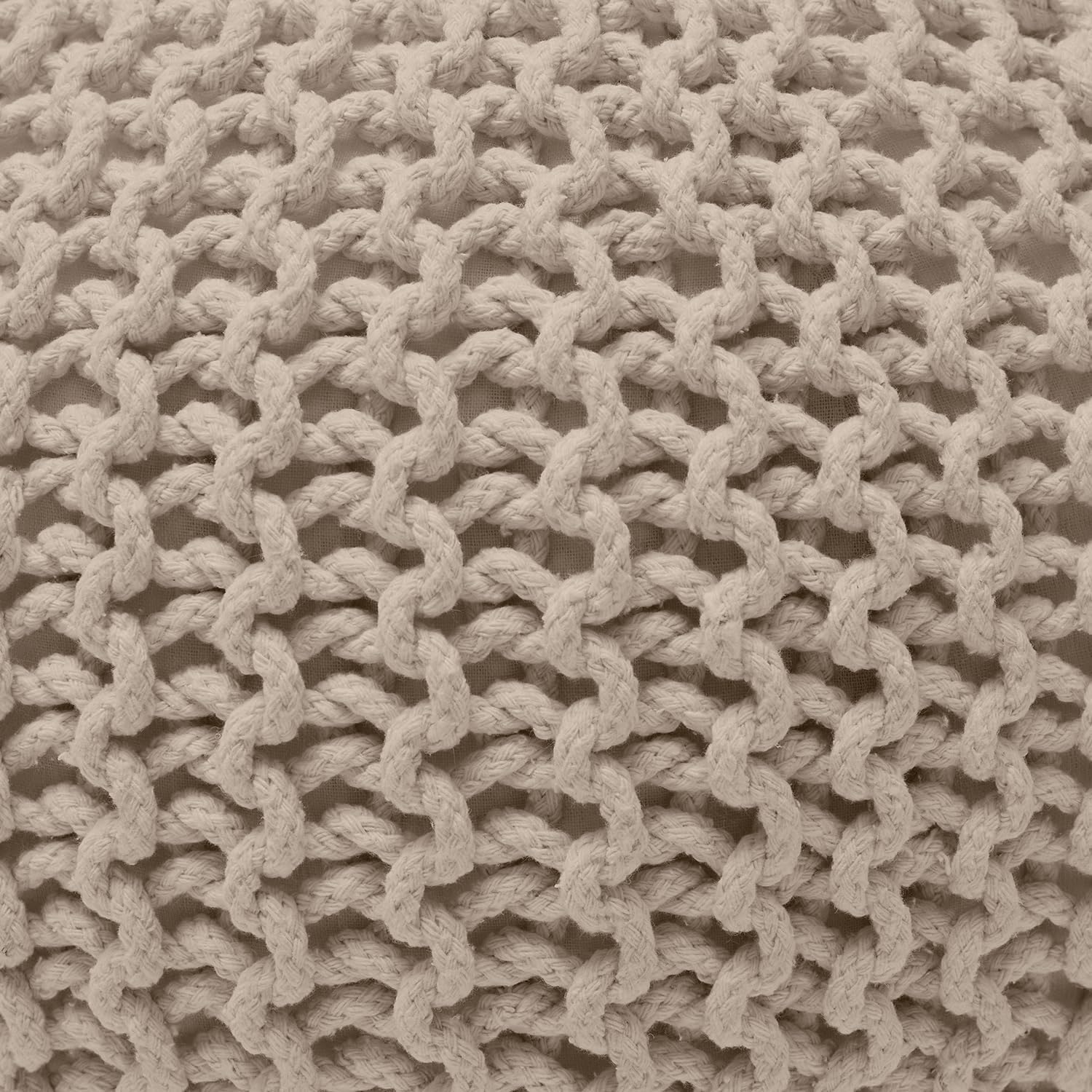 Ornavo Home Pouf Ottoman Foot Rest - 100% Cotton Pouffe - Hand Knitted Cable Braid Cord - Boho Round Stuffed Ottoman for Living Room, Bedroom - Beige