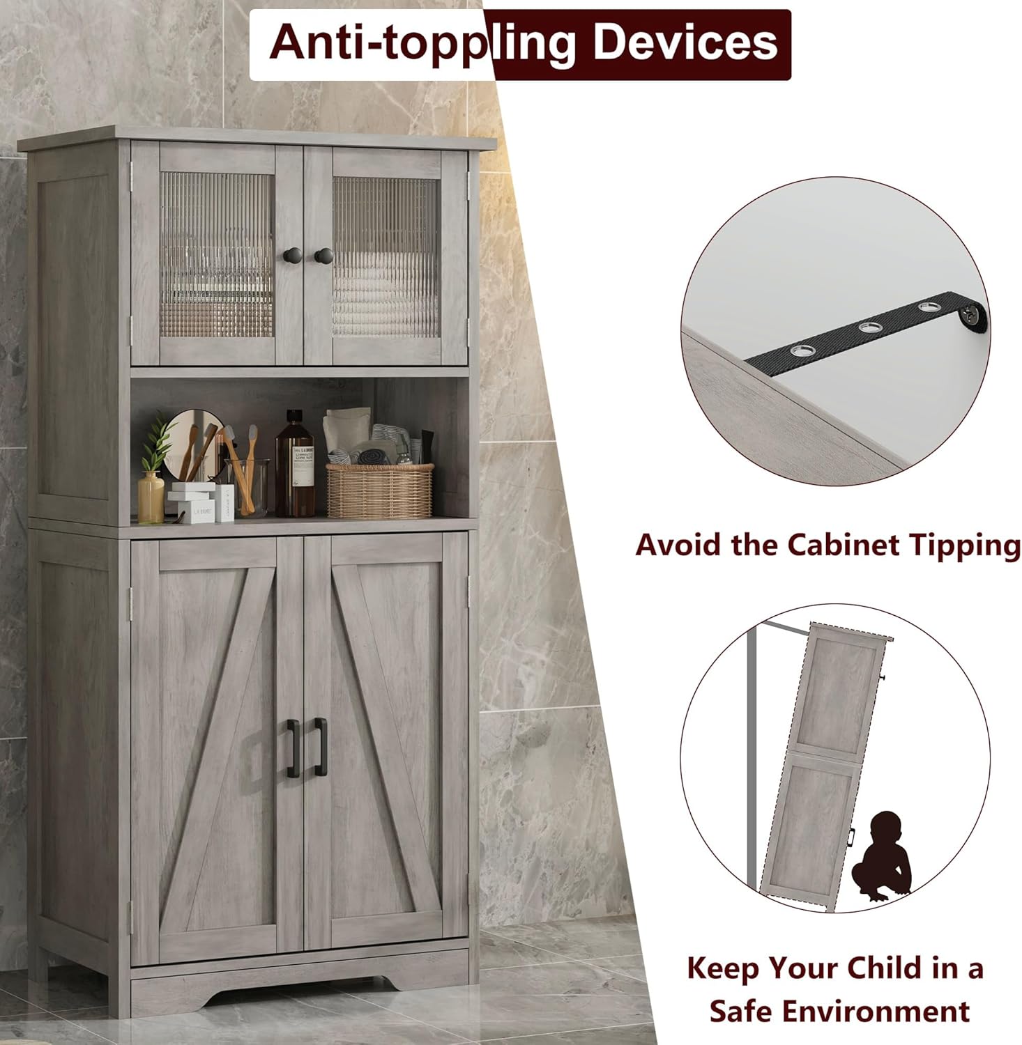 - Durable and Safe Construction: Built from high-quality MDF, this freestanding bathroom storage cabinet promises long-lasting durability and stability. The inclusion of anti-tipping hardware provides added security, making it a safe choice for families