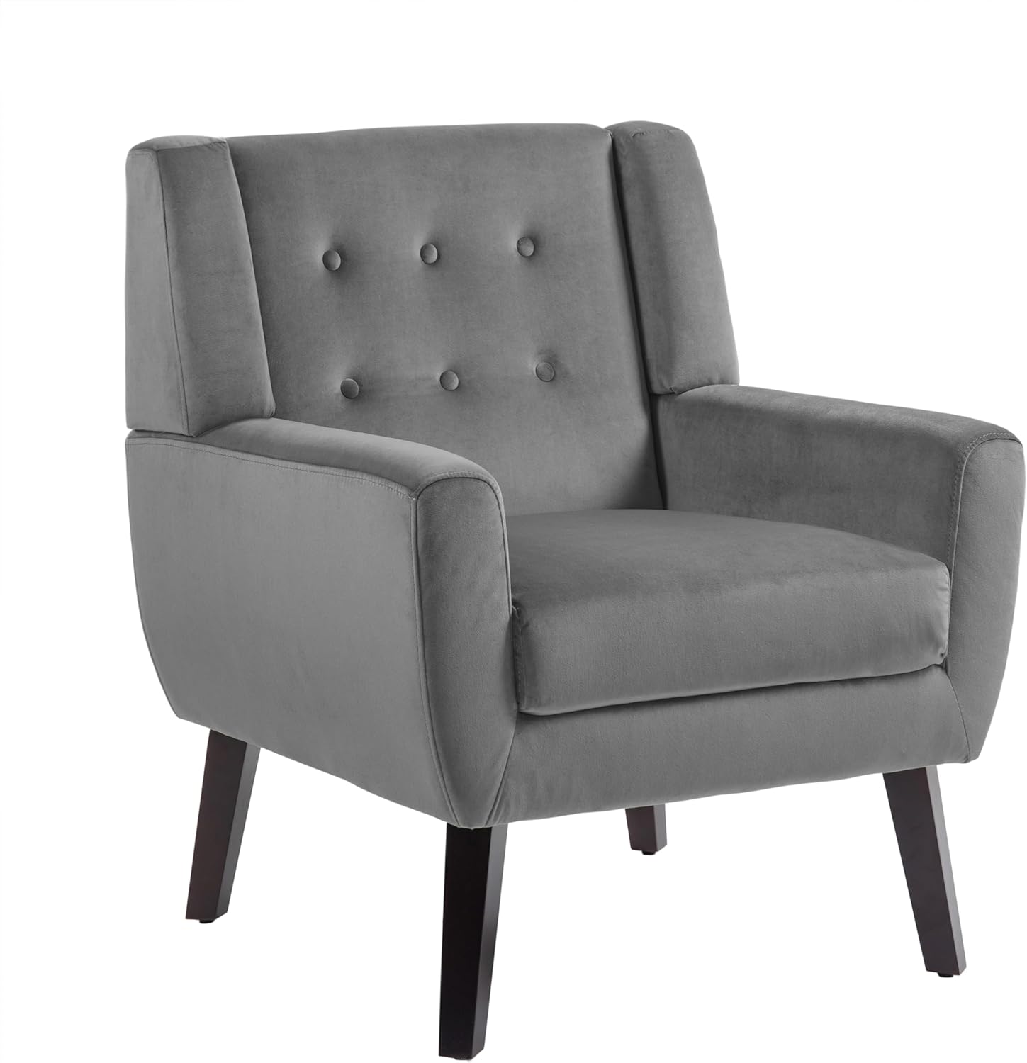 UIXE Accent Chair, Velvet Upholstered Armchair for Living Room, Modern Club Arm Chairs Comfy Single Sofa Button Tufted Bedroom Reading Seat - Gray, Set of 1