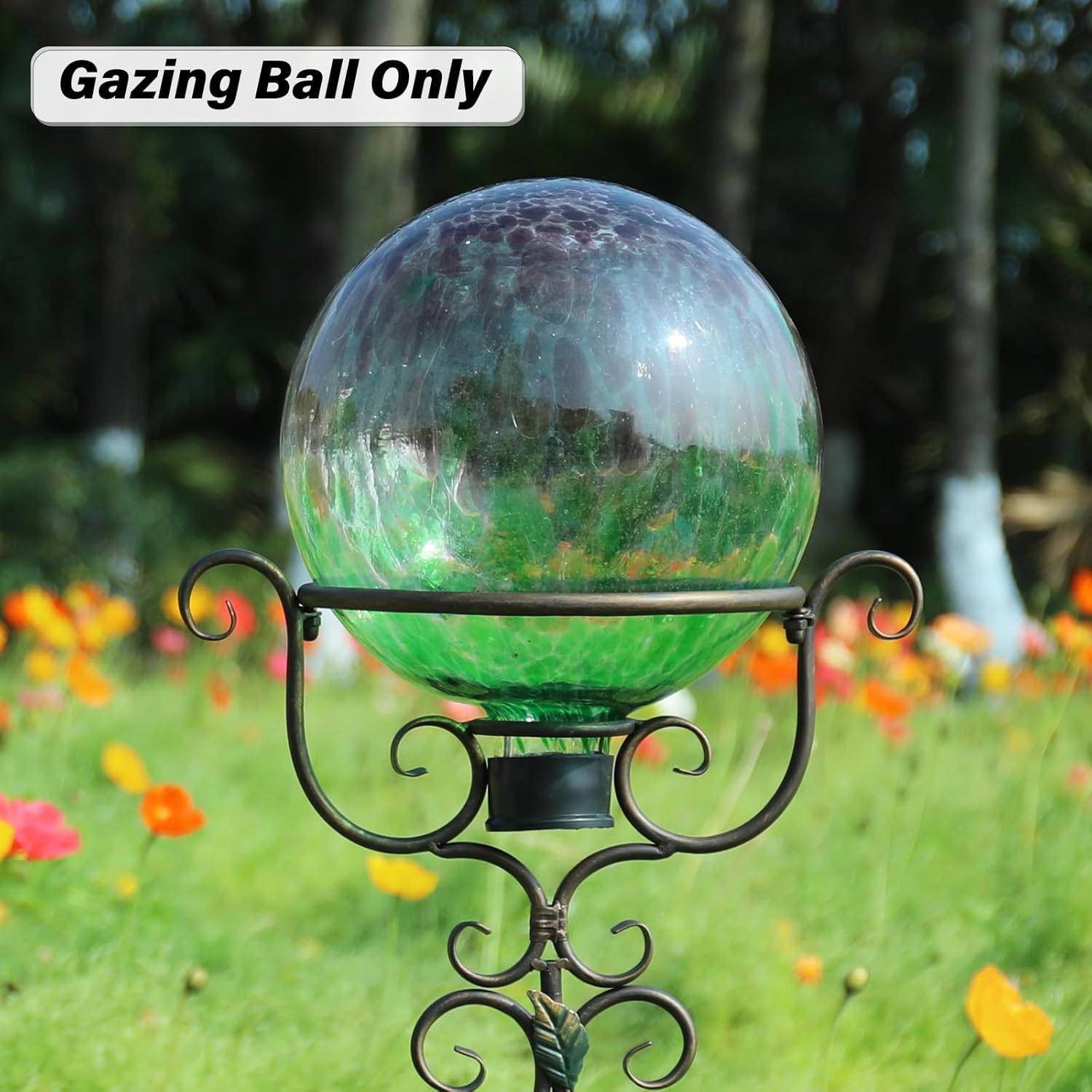• This gorgeous garden globe features a stemmed bottom with a rubber cap, so you can easily place it on a stand of your choice for display(stand excluded)