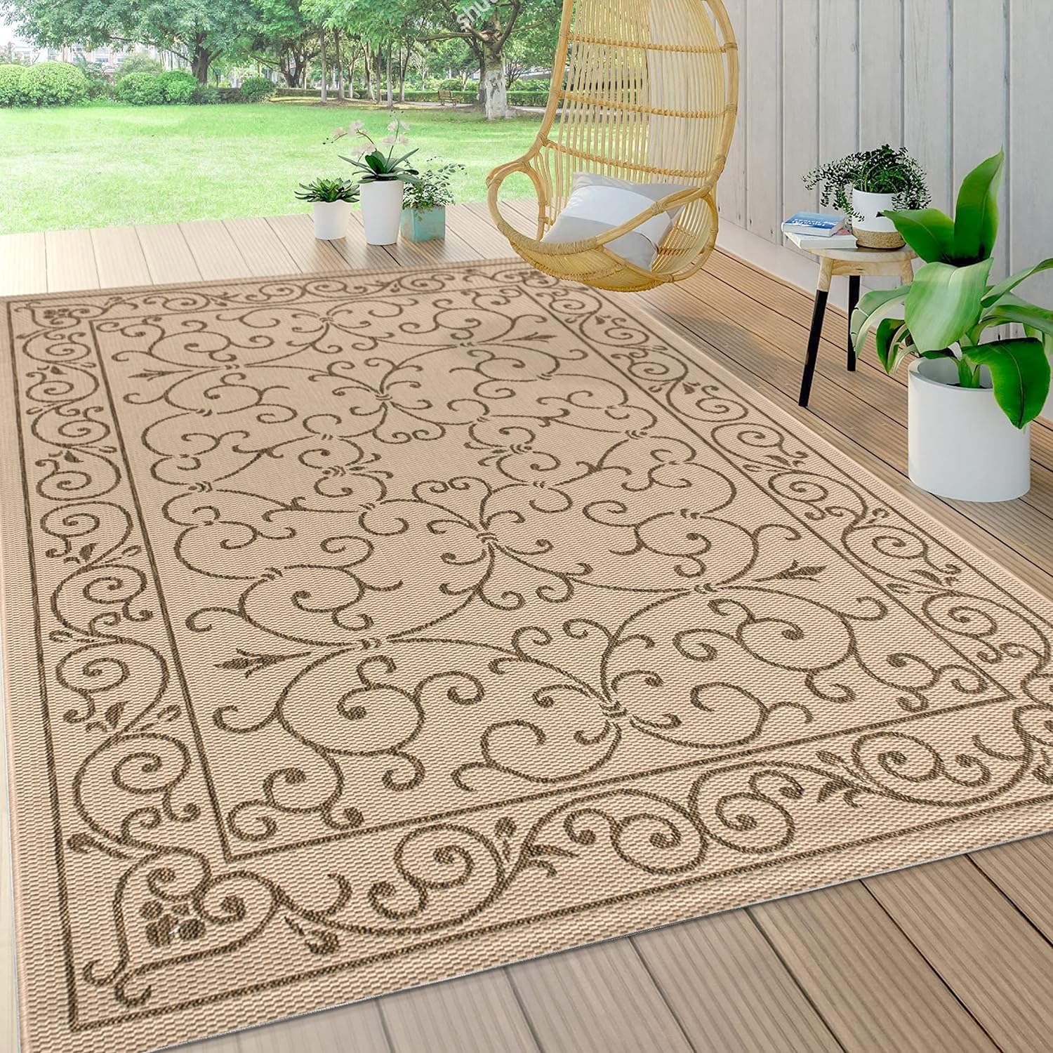JONATHAN Y Vintage Filigree Indoor Outdoor Area Rug 10X14 Beige/Brown, Charleston Textured Weave for Backyard, Patio, Porch, Easy-Cleaning, High Traffic, Pet-Friendly, Non-Shedding (SMB106A-14)
