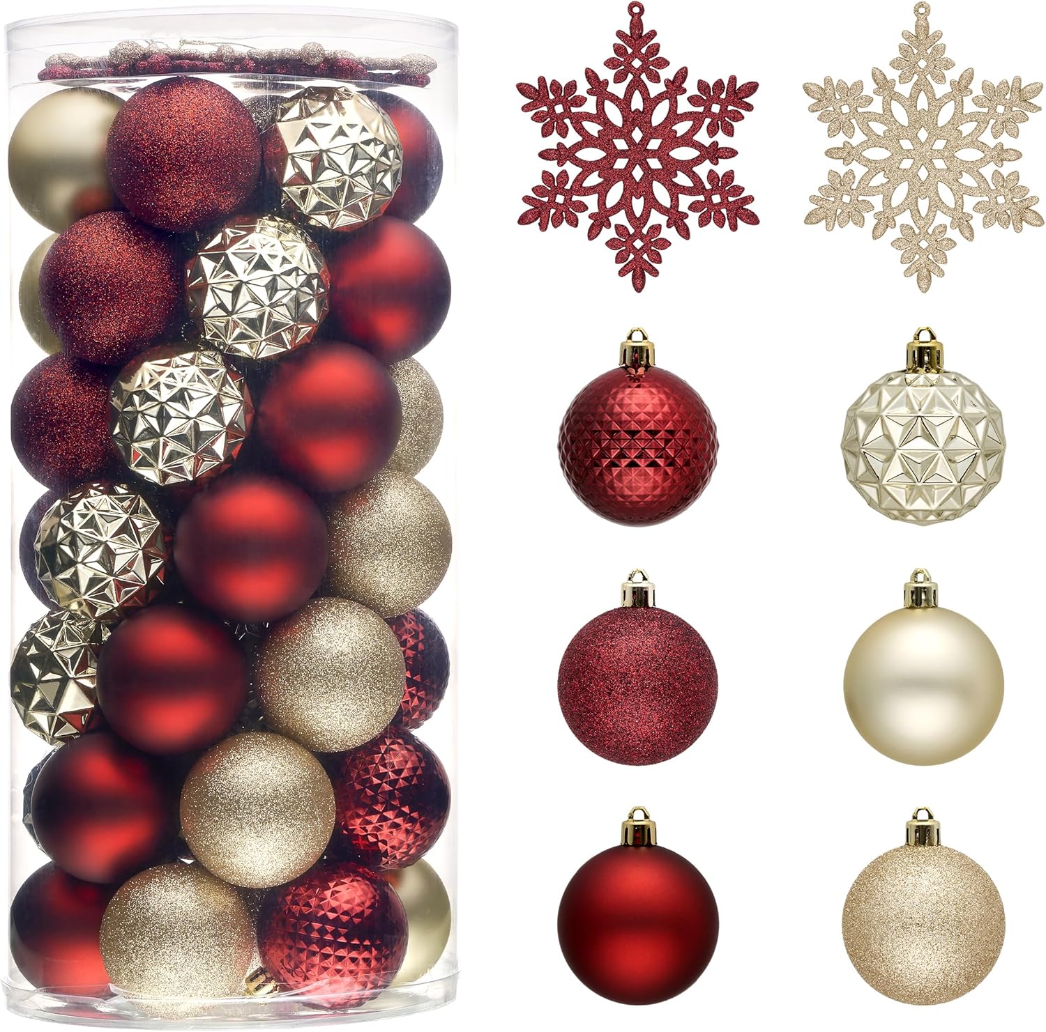 - 【Package and Size】This ornament ball set include 50pcs Christmas ornaments measuring 2 inches in diameter, featuring seamless connections for a polished look