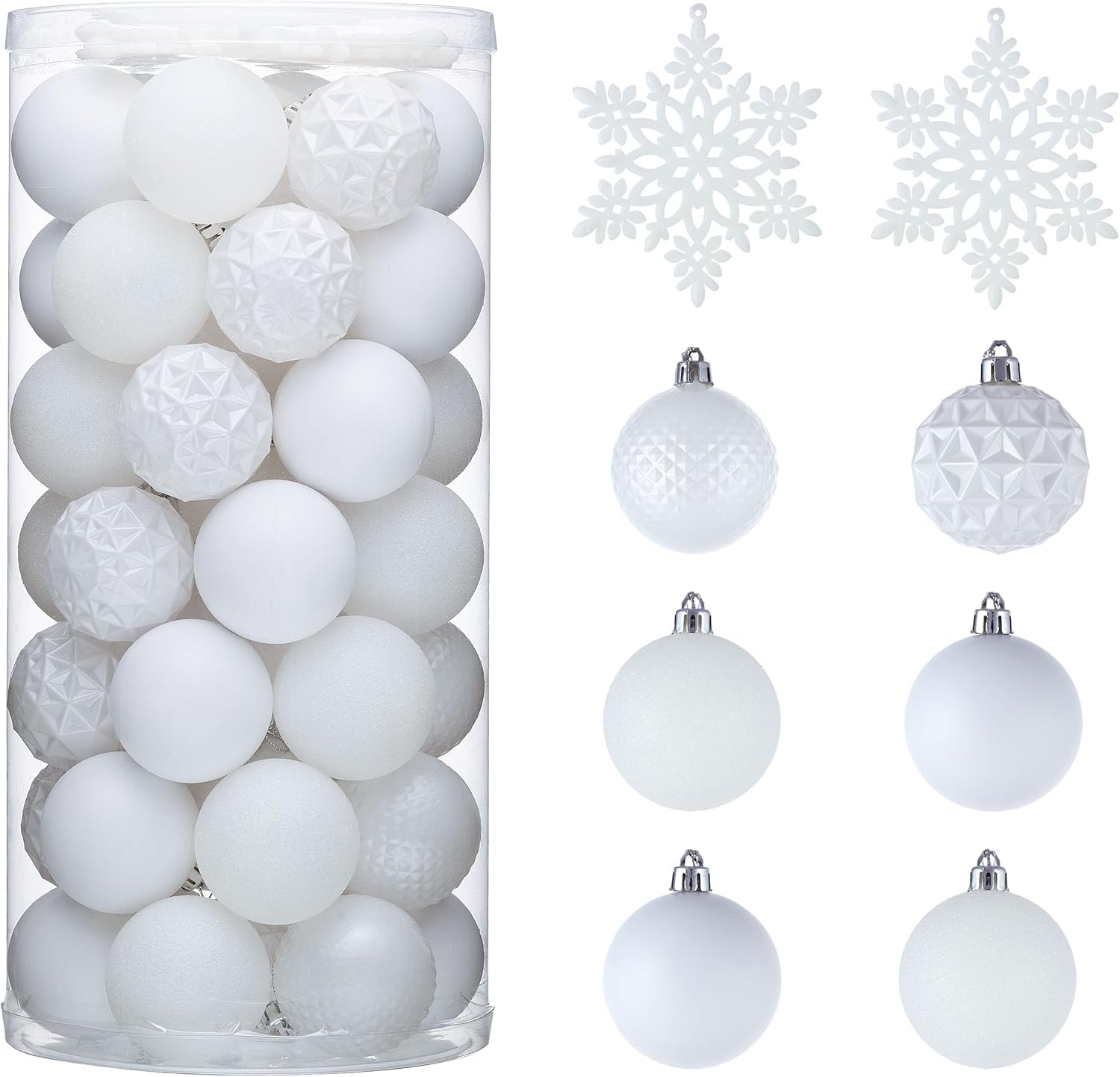 Valery Madelyn Christmas Tree Decorations Ornament Set for Fall Halloween, 50ct 2 Inches White Shatterproof Christmas Ball Ornaments Hanging Xmas Holiday Party Decor