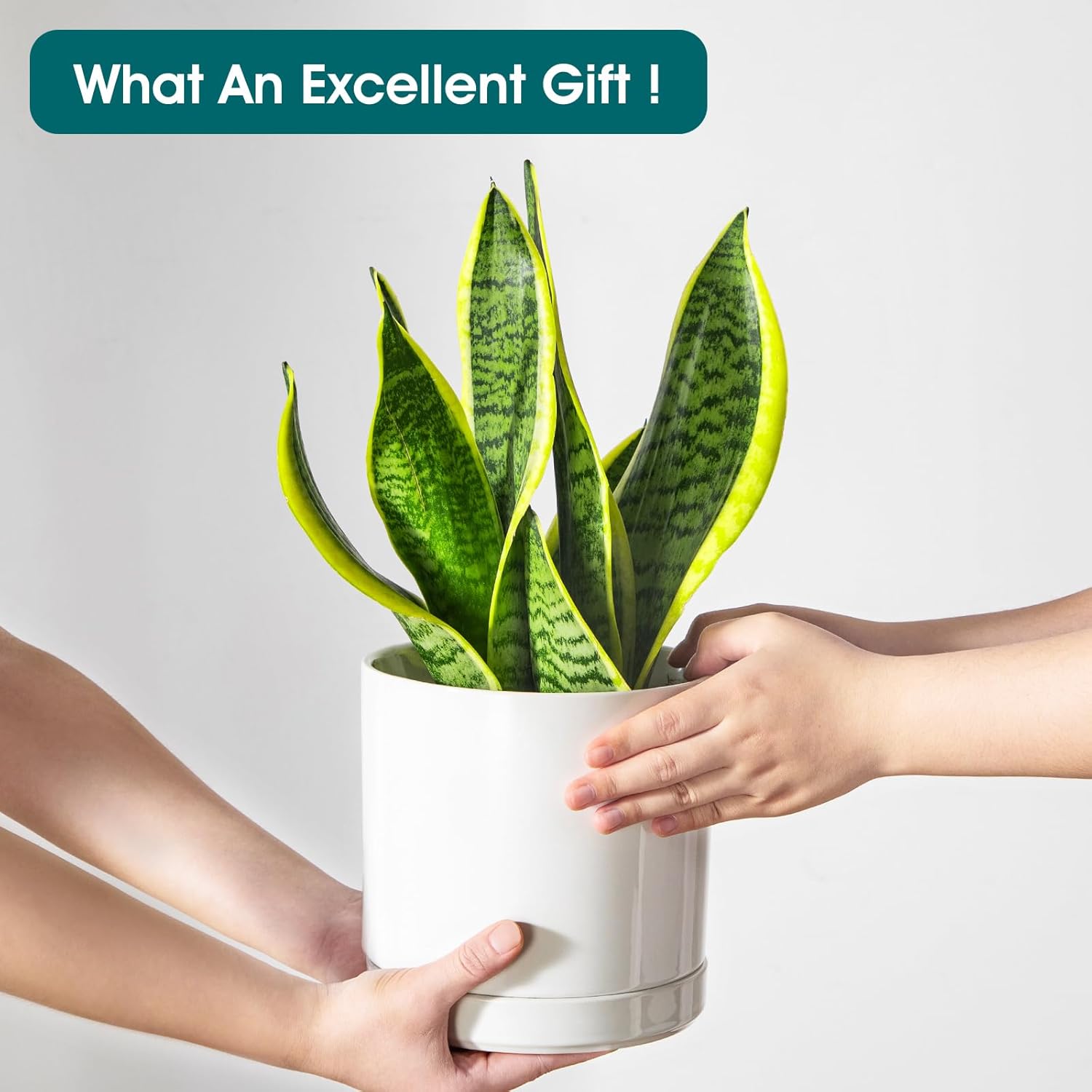 - 【Modern Ceramic Planters】 Designed with contemporary aesthetics, these plant pots feature elegant finishes in multiple colors to complement any decor—Great for decorating windowsill, shelf, tabletop, bedroom, garden, and outdoor patio. while the roomy interior accommodates medium-sized plants like flowers, pothos, monstera, africa violet, snake plant, money tree and small tree sapling.