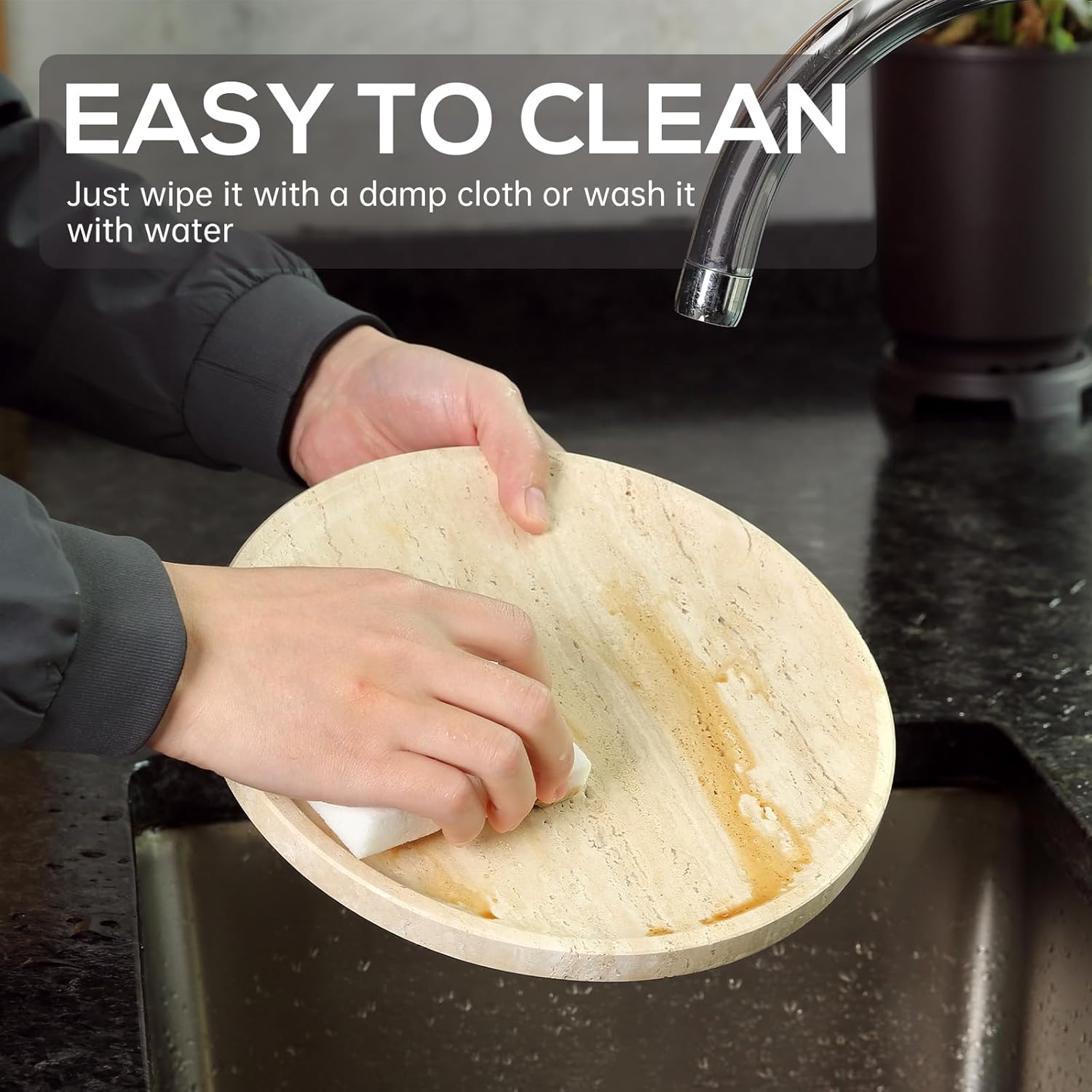 - Suitable Size: Our small round marble tray measures 9.8" in diameter and 0.7" thick. This catchall tray fits bathroom washstands, kitchen counters, coffee tables, bedroom dressers, vanity tops, and bedside tables—ideal for organizing and enhancing your space