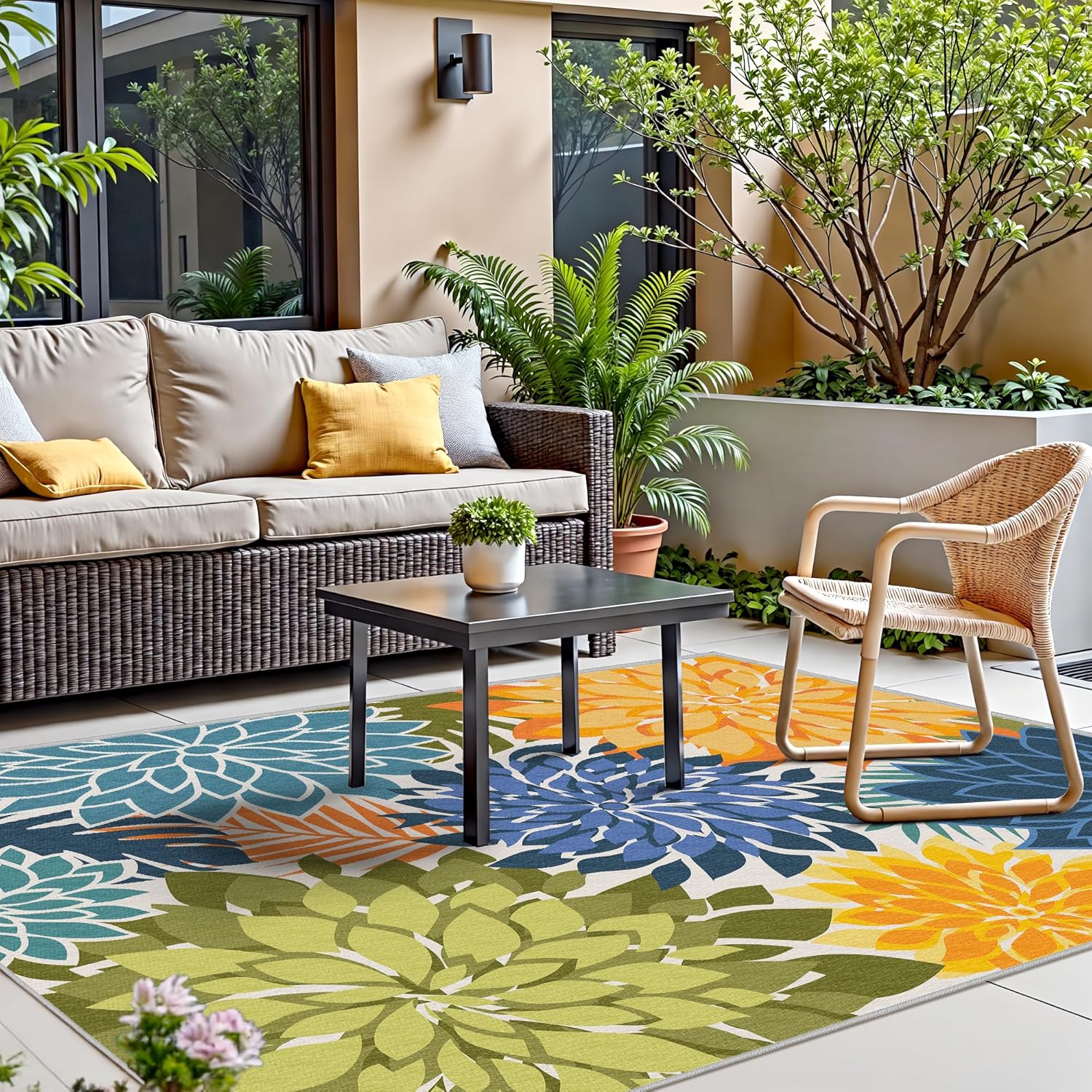- Easy to Clean: Our outdoor floral rug is designed for hassle-free maintenance—simply shake off debris, hose it down, or spot clean for effortless upkeep, keeping it looking fresh all season long.