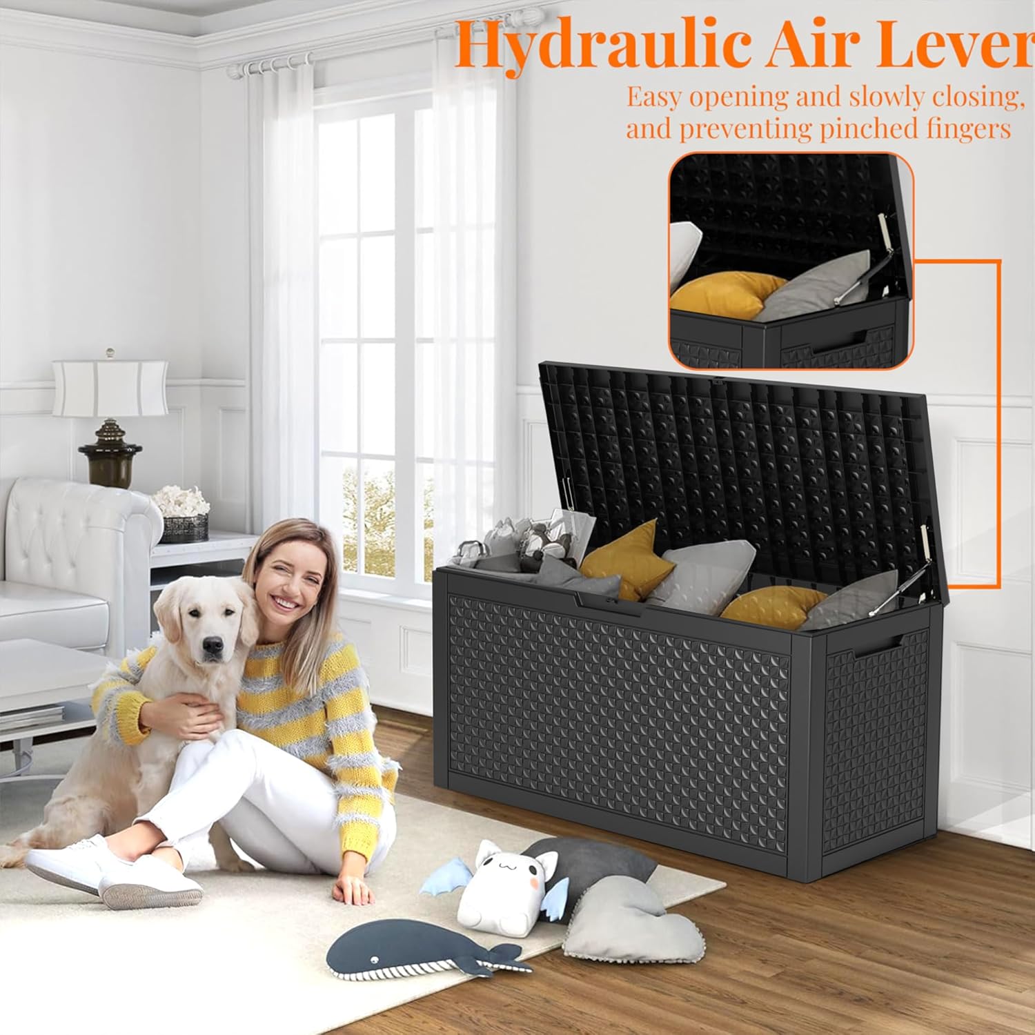 - Large Capacity for a Variety of Outdoor Items:The 100-gallon deck box offers plenty of space for larger items such as outdoor cushions, garden tools, or pool accessories, keeping your outdoor area clutter-free.