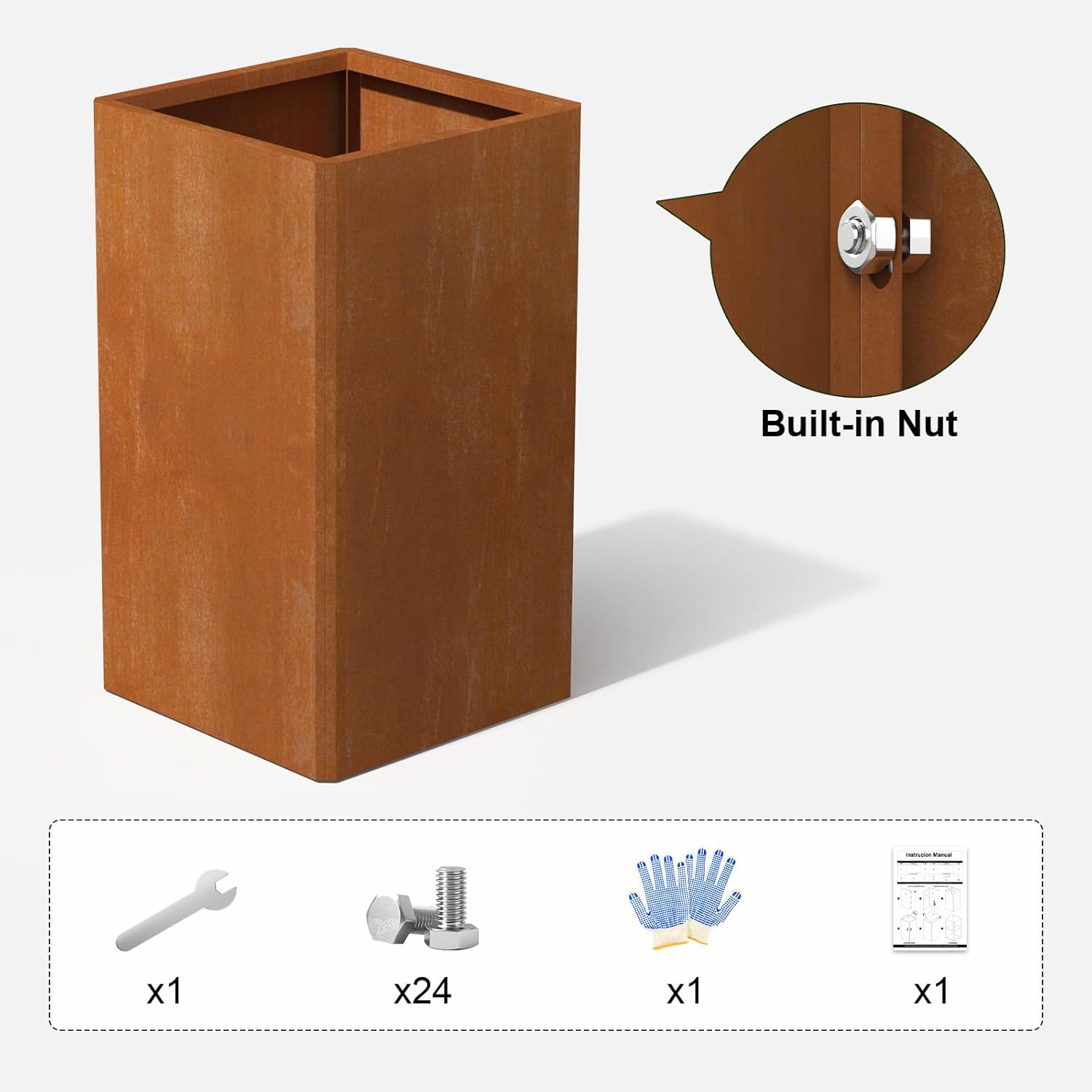 • ♻️ Eco-Height Landscape Transformation: Large outdoor planter made with metal steel withstands elements. Sustainable rust evolves elegantly—transforms porches/offices into instant vertical gardens!