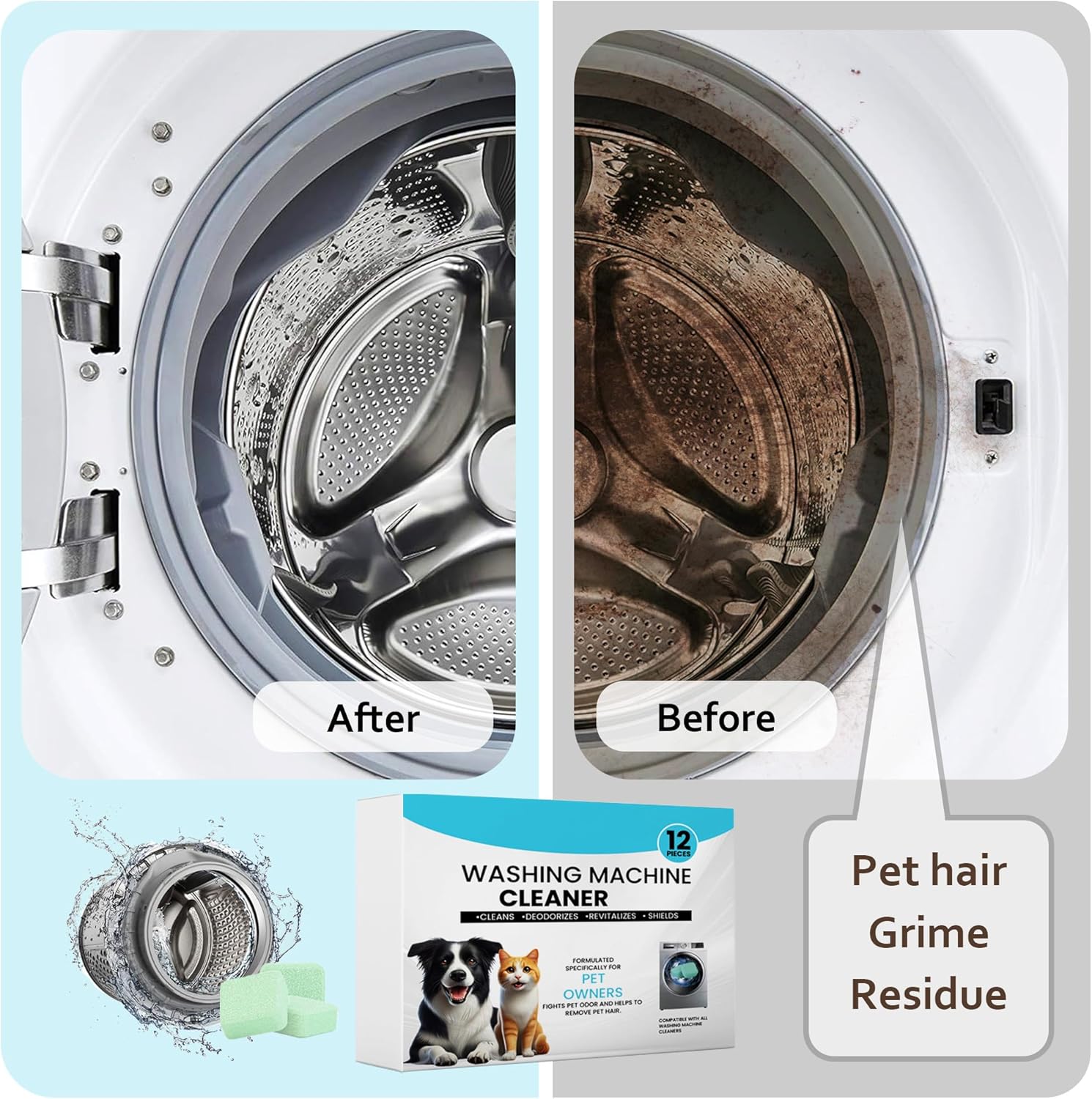 - POWERFUL REMOVAL OF PET ODORS: washing machine cleaning tablets contain tea polyphenols to eliminate pet odors from your washing machine, leaving your washing machine smelling fresh.