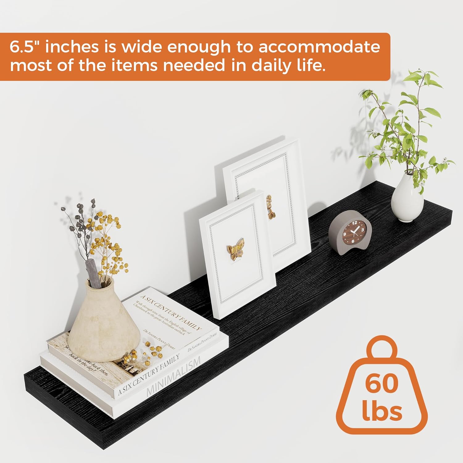 - STYLE & VERSATILITY: Elevate your home with our set of 2 elegant wall shelves, designed for versatile display options. Arrange them side by side for a clean, unified look, or stagger them for a bold, dynamic effect. Adding a touch of sophistication while providing practical storage