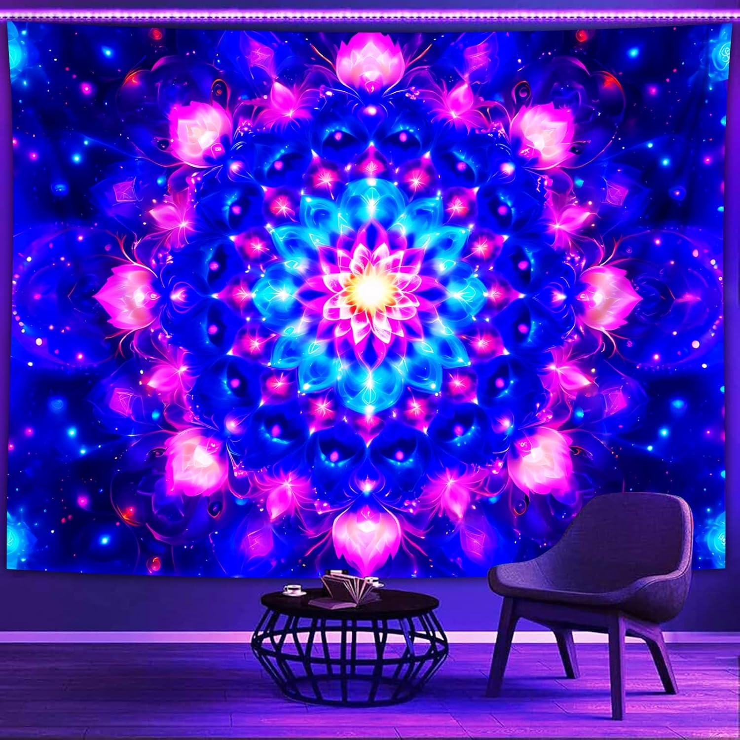 • UV REACTIVE: Utilizing special ink and advanced HD printing technology, our tapestry boasts a powerful blacklight effect and vibrant colors under black light, UV light, and neon.