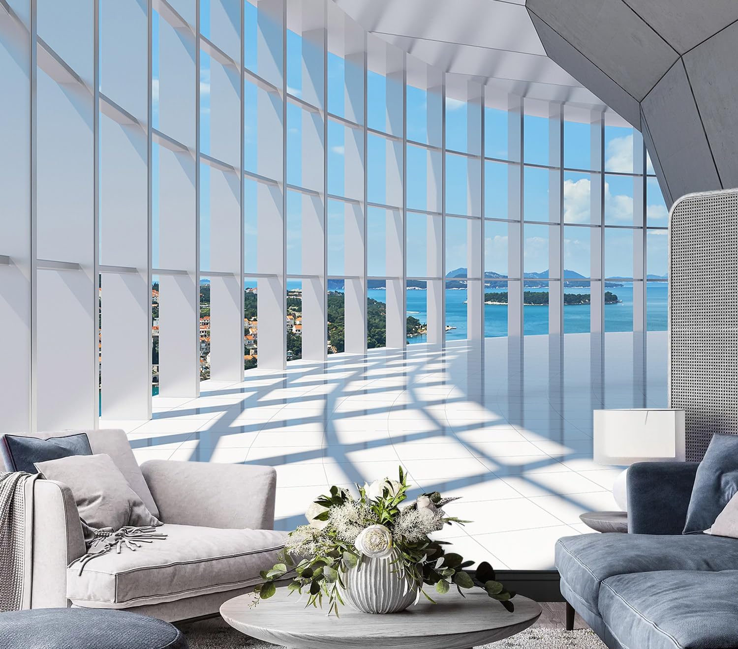 AFZEVEB-3D Blue Seascape Wallpaper Space Wall murals for Bedroom 136"x96" (Not Peel and Stick)