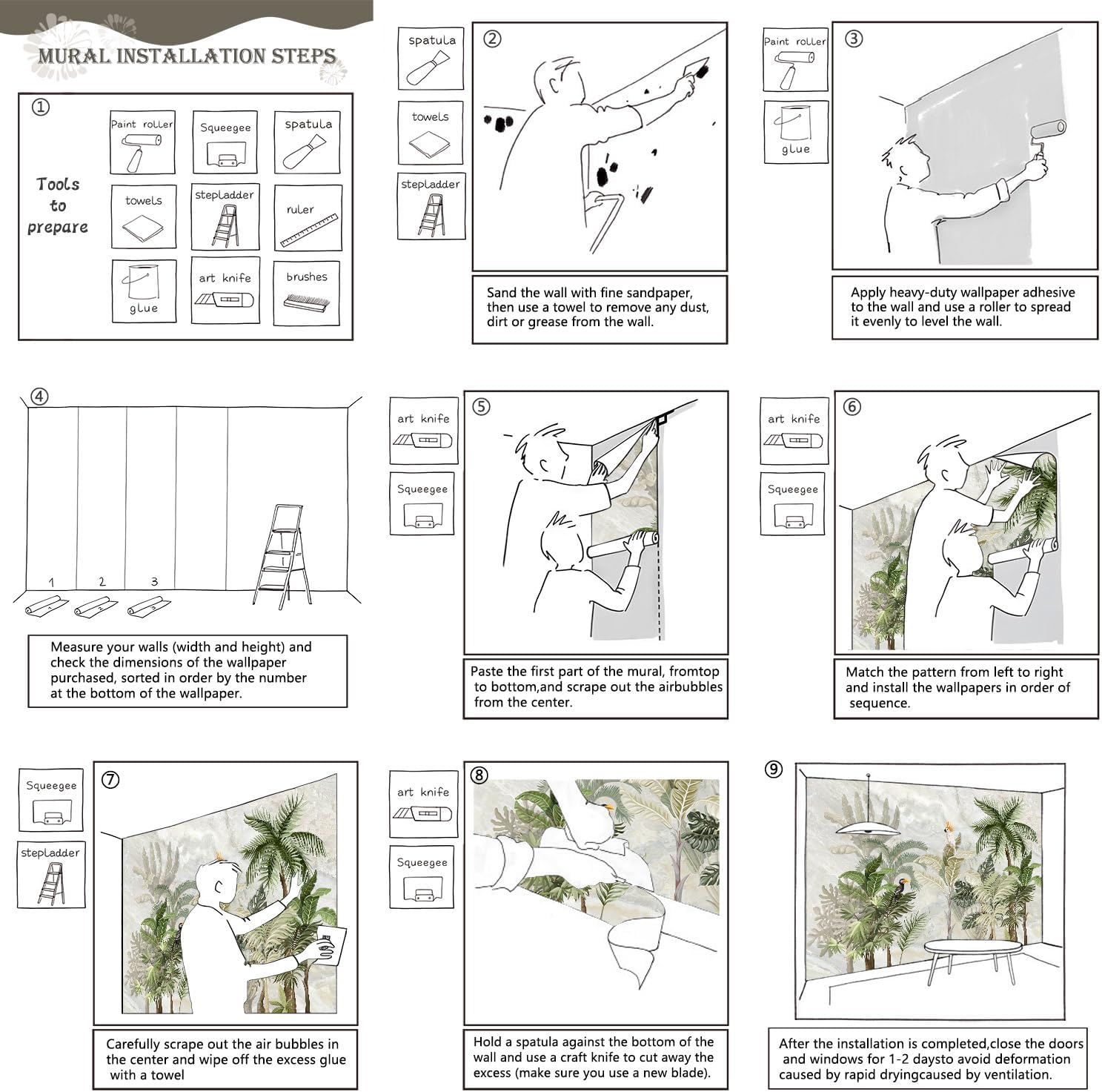 - Tips: Mural can not be peeled and pasted, you need to buy a heavy duty wallpaper glue