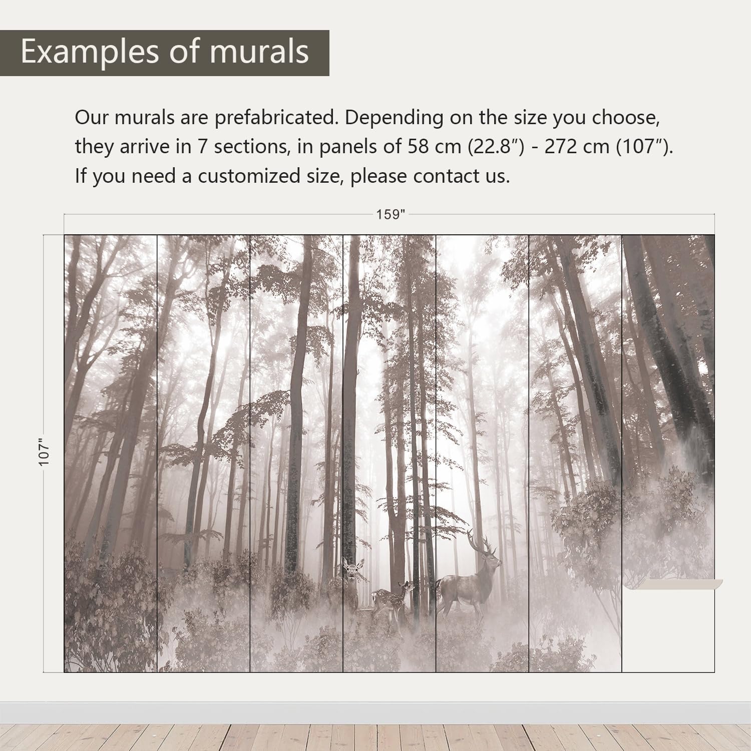 AFZEVEB-Forest Wallpaper Vintage Trees with Deer Wall murals for Bedroom 159"x107" (Not Peel and Stick)