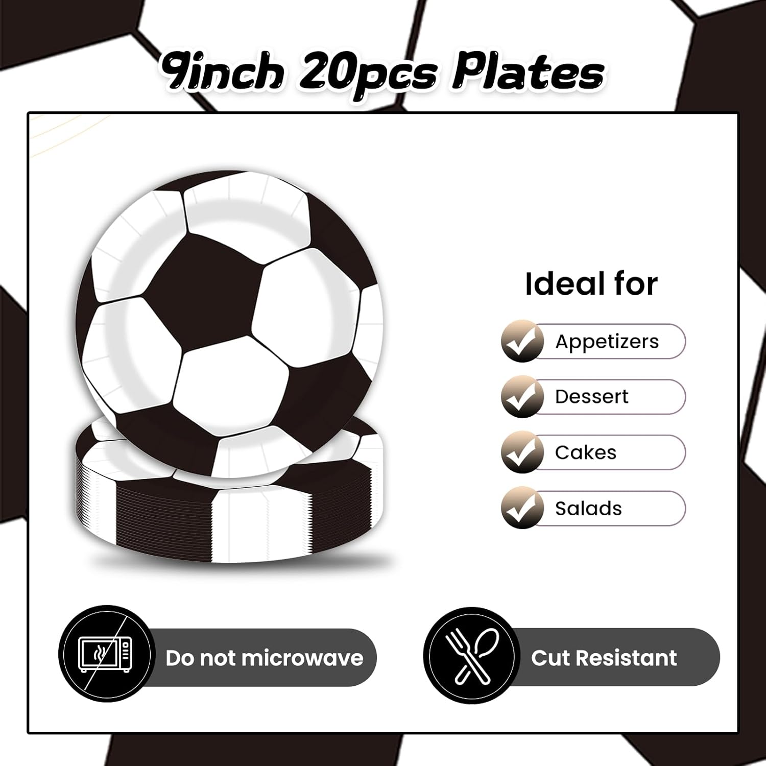 - 【Complete Soccer Party Essentials】20 premium 9" soccer plates + 20 coordinating napkins - perfect soccer party supplies for 20 guests. Features soccer ball for instant theme decor!