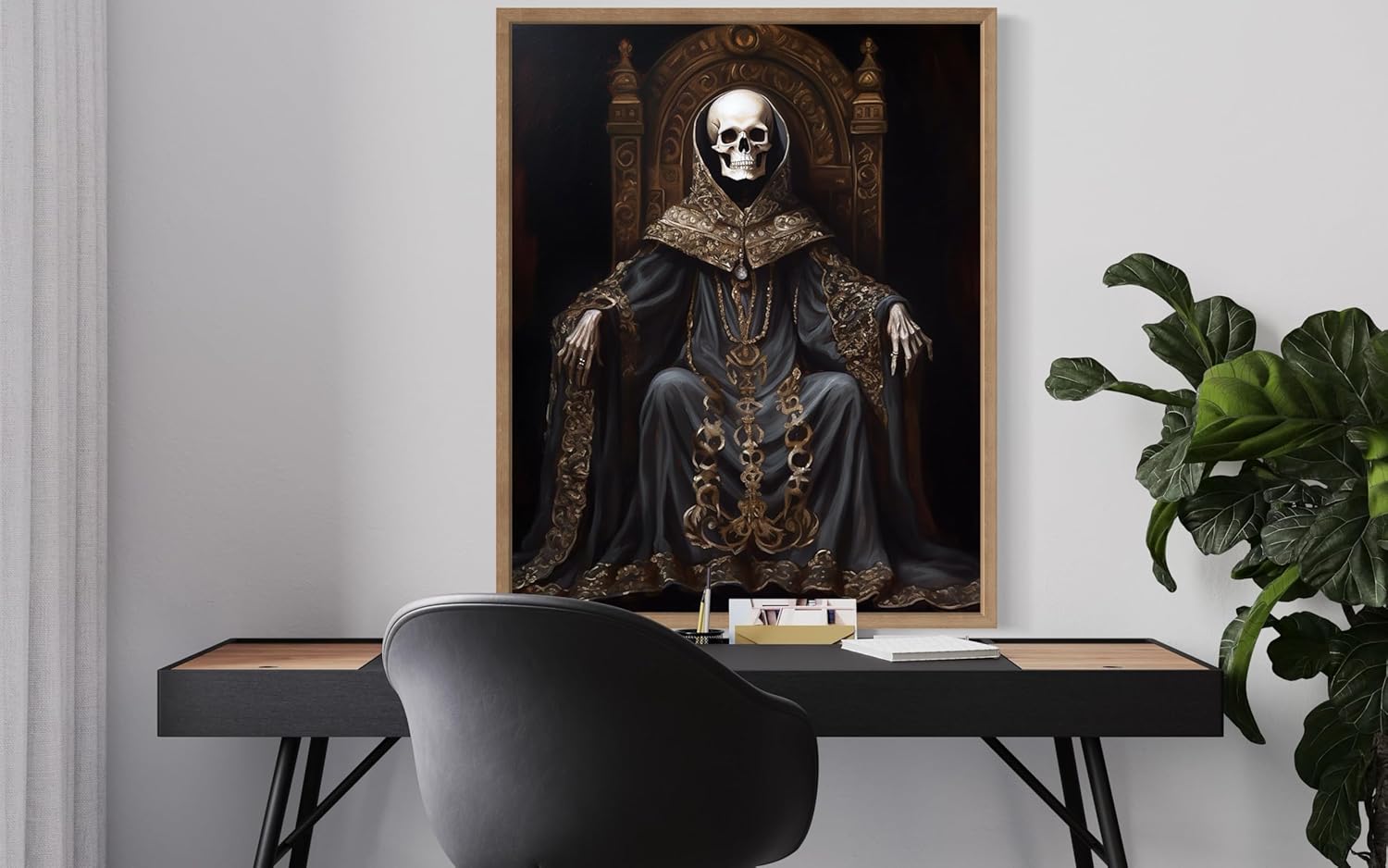 Skull King Poster Art Print, Halloween Scary Vintage Wall Art Academia Spooky Painting Decoration for Horror Prints, Gothic Posters Bedroom Decor 89 (Skull King 1, 16 x 20 inches, Wood Frame)