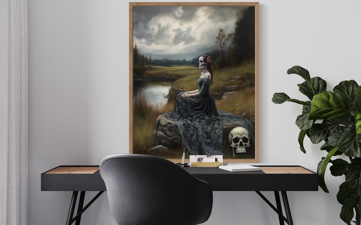 Widow Ghost Poster Art Print, Halloween Scary Vintage Wall Art Academia Spooky Painting Decoration for Horror Prints, Gothic Posters Bedroom Decor 89 (Widow Ghost, 16 x 20 inches, Wood Frame)