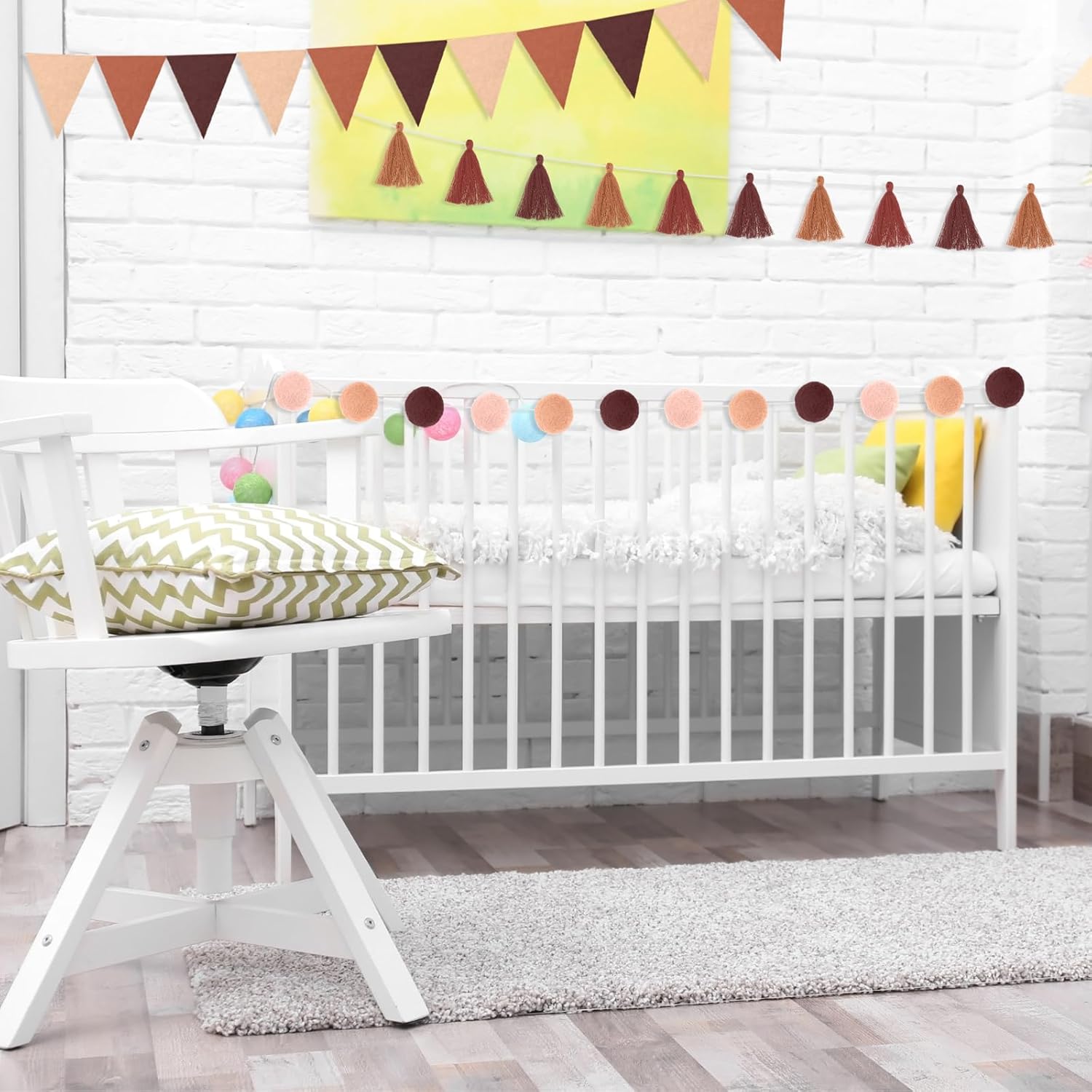 Irenare 9.8 ft Pom Pom Garland Felt Colorful Tassel Banner Christmas Party Pompoms Garland Decorations Felt Pennant Banner for Classroom Home Mantel Fireplace Birthday(Gradient Brown)