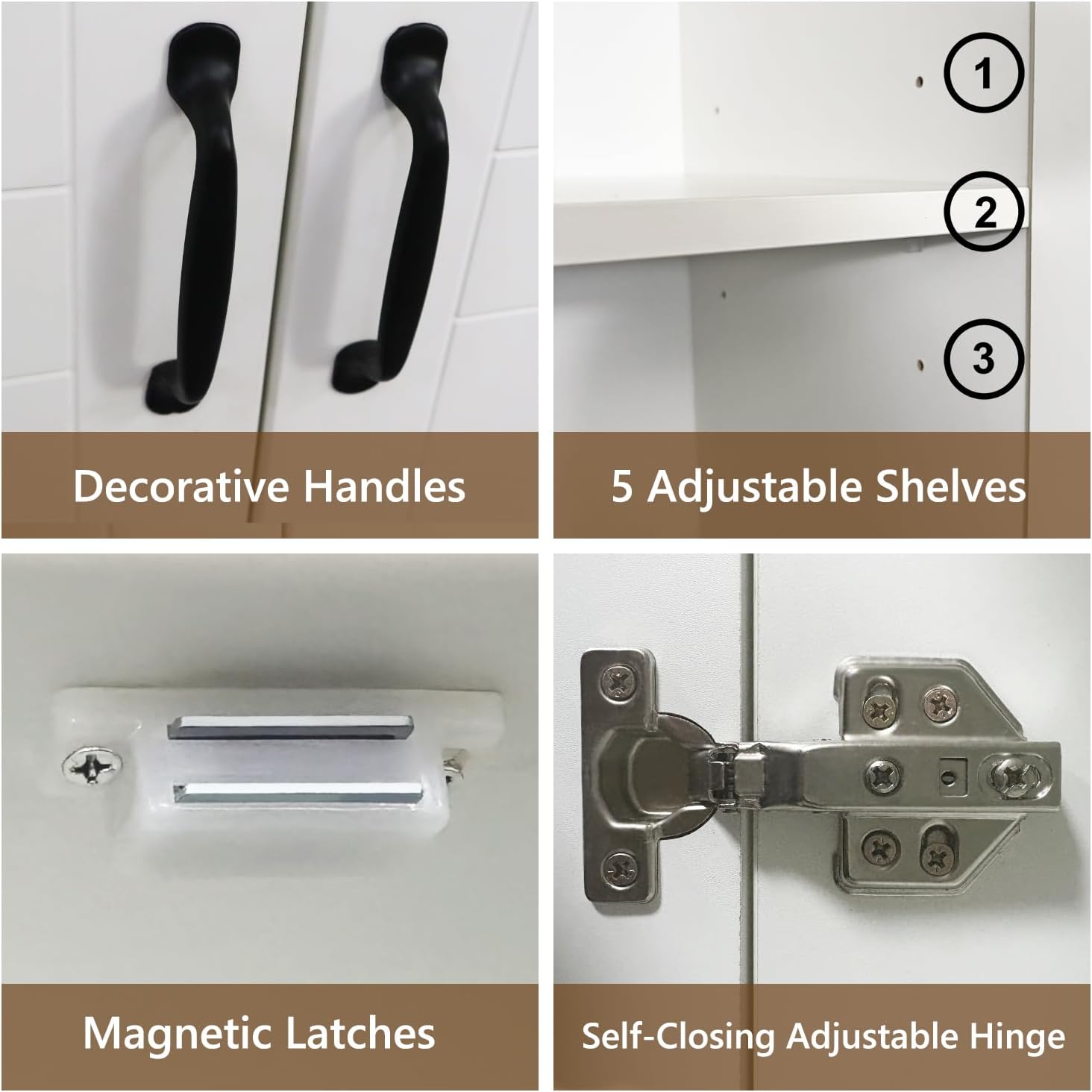 - High-quality Material: The kitchen pantry storage cabinet adopts MFC Material. The thickness of the 15mm sheet material has sufficient hardness and durability. The surface is waterproof and easy to clean