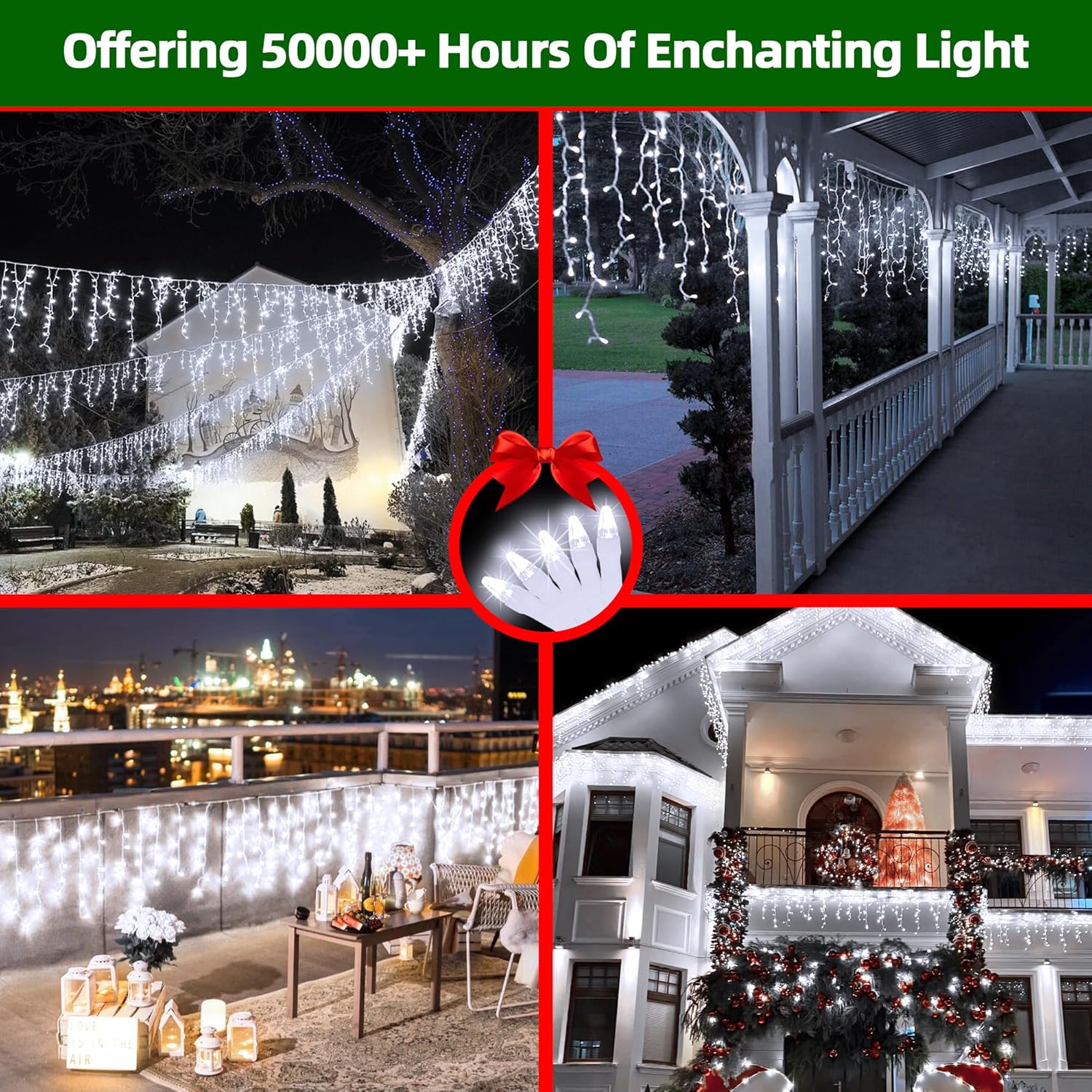 - Stunning Icicle Design for a Winter Wonderland: With 148 elegant drops and 666 LEDs, these icicle lights create a breathtaking cascade of light, perfect for mimicking the beauty of real icicles. Transform your home, garden, or event space into a magical winter scene.