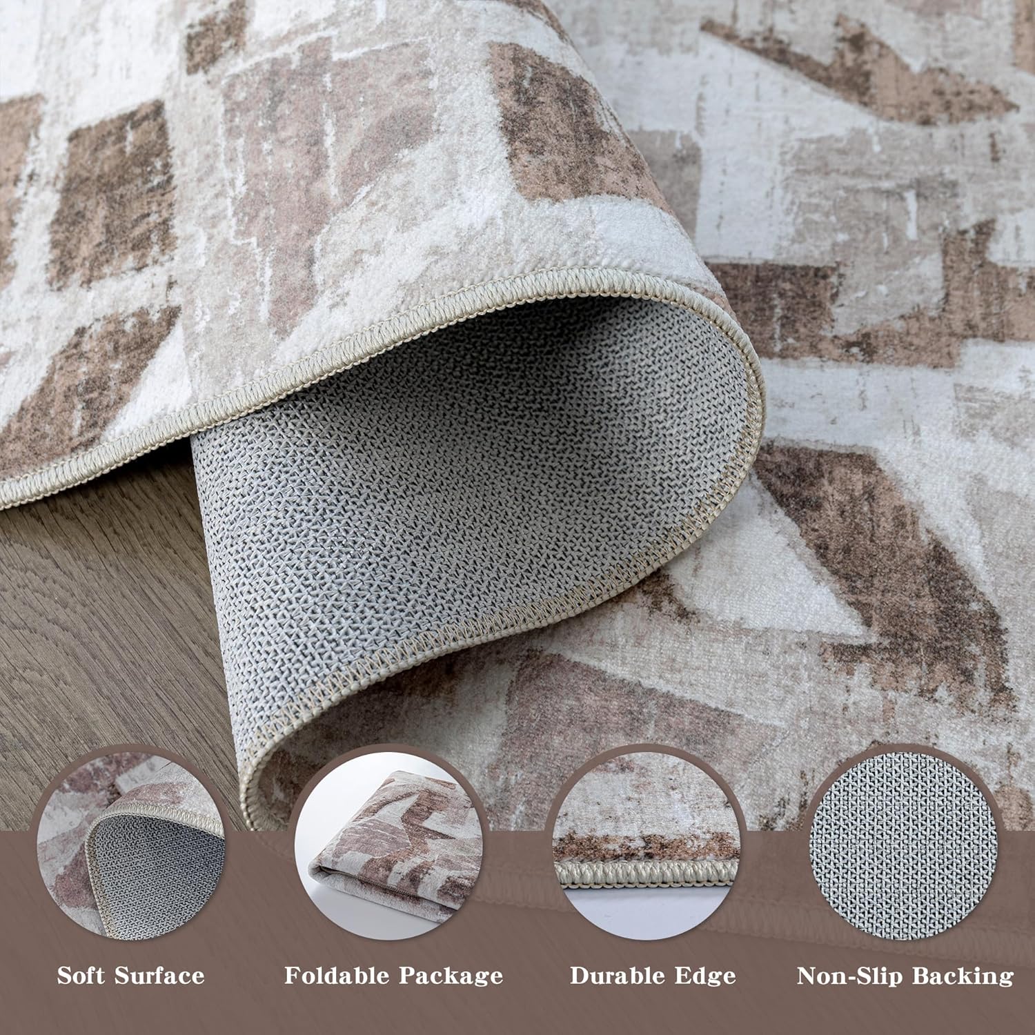 Modern Abstract 5X7 Area Rug for Living Room Bedroom Washable, with Non-Slip Rubber Backing Print Faux Wool Thin, Brown Throw Large Carpet for Kids Playroom Dining Room Pet & Child Friendly
