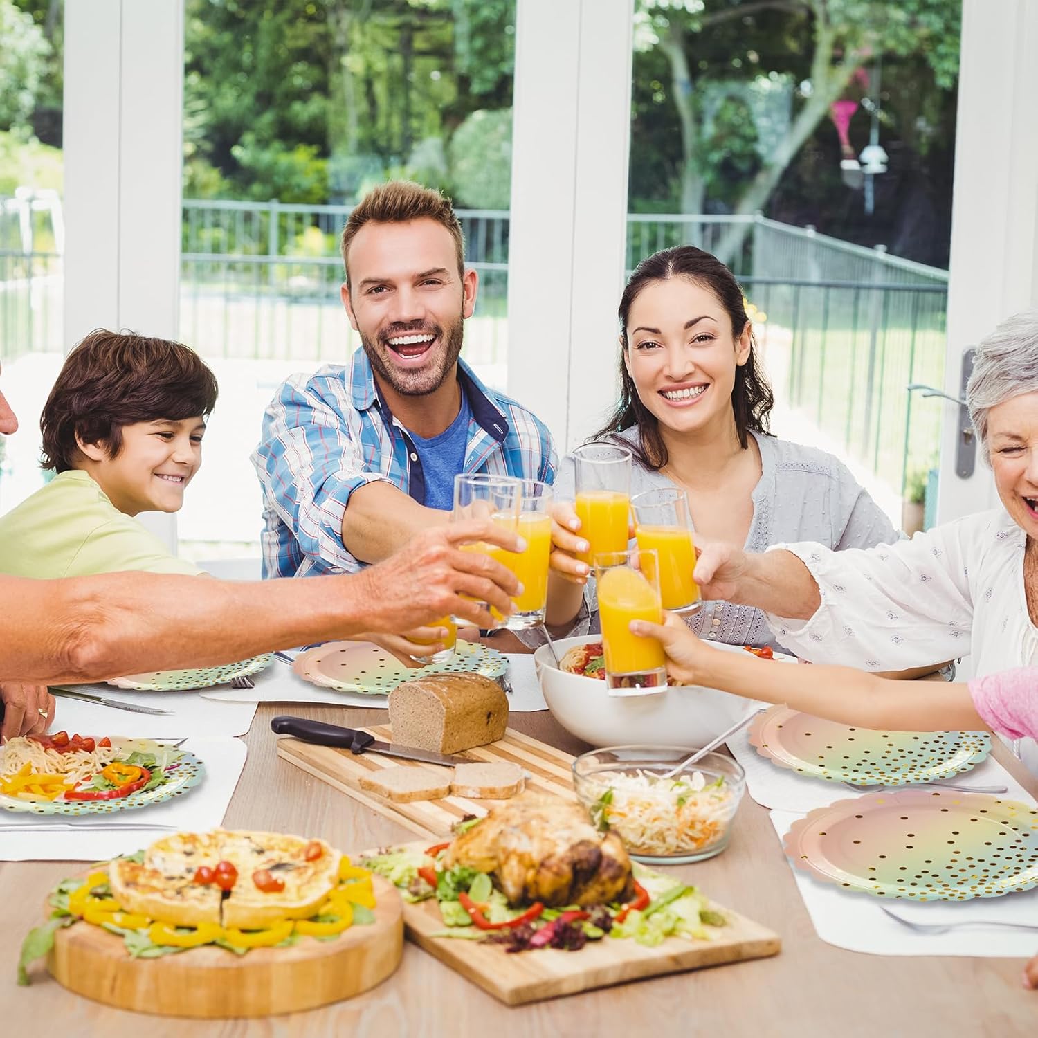 - 【FOR EVERY EVENT】: Elegant colorful paper plates for party is great for everyday and party use, like cocktail evenings, BBQ parties, family gatherings, bar decorations, picnics, elegant bridal showers, afternoon tea parties, birthdays, holiday celebrations, Christmas, New Years, Graduation Parties, and other occasions and events.