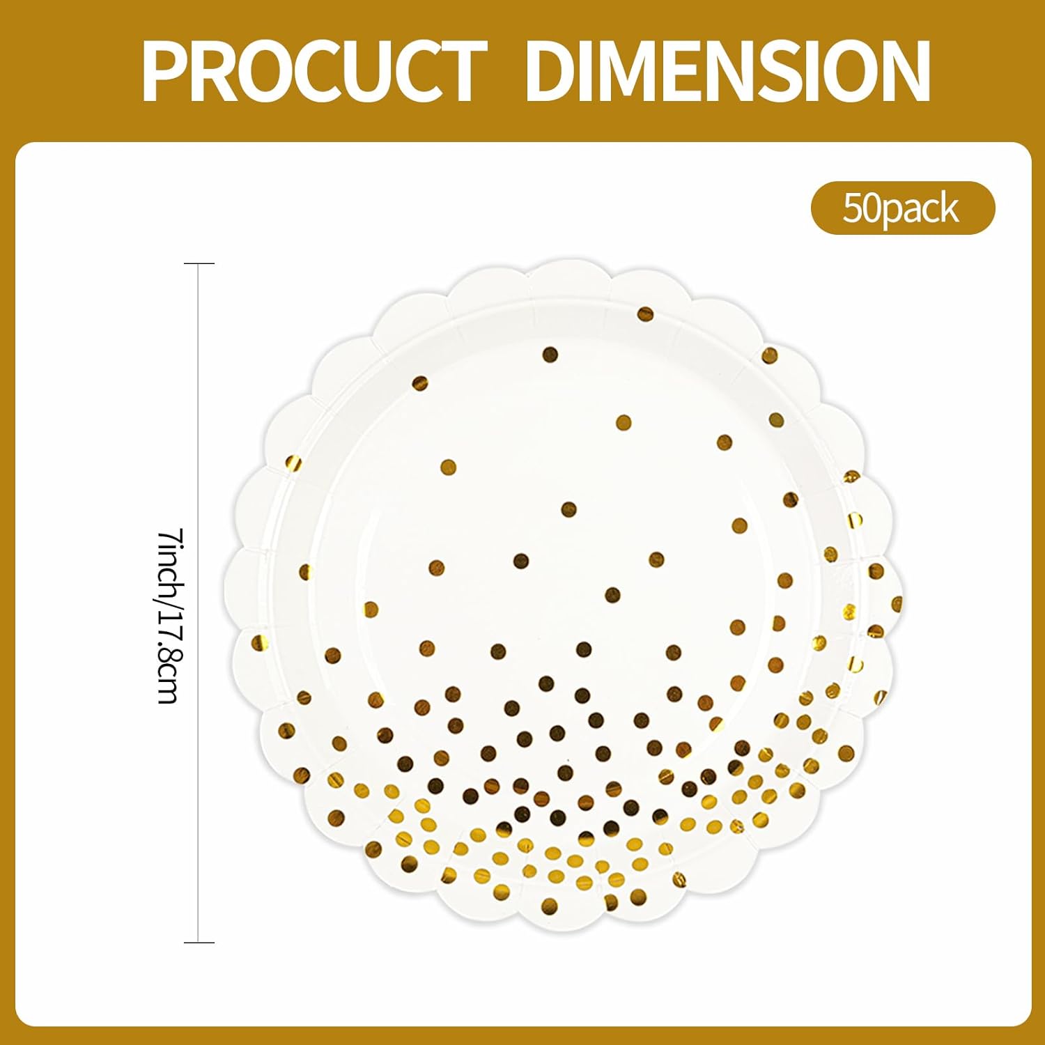 - 【ELEGANT WHITE PARTY DECORATIONS】: White and gold party plates set comes with 50pcs white paper plates, serve up to 50 guests, specifically for dessert plates size: 18cm/7inch, gold foil paper plates are exquisite and generous, the perfect party addition you've been looking for a guaranteed hit!