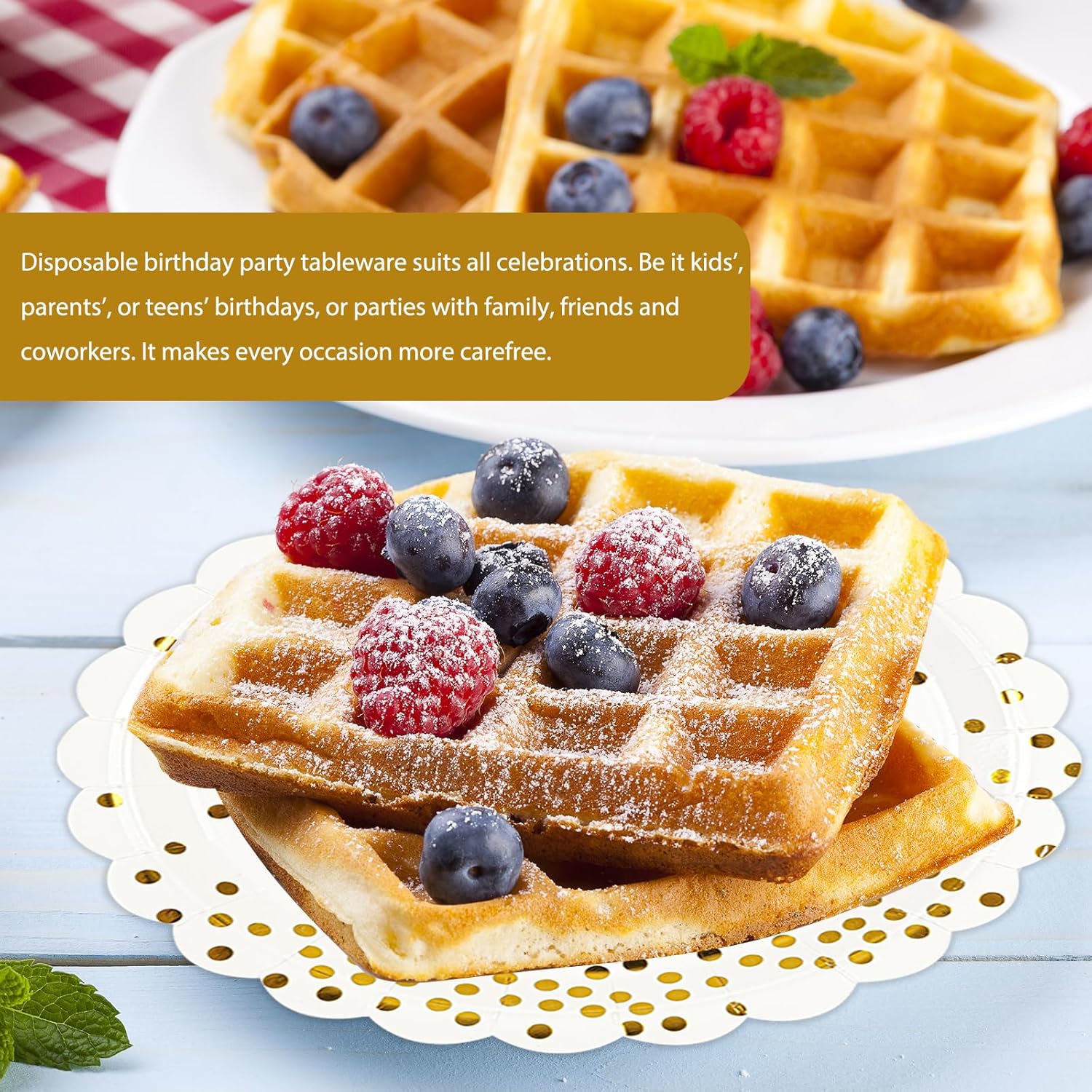 - 【SAVE TIME & CONVENIENT】: All white and gold dessert plates are disposable and recyclable. It can be thrown away when you are done using them, and they are easy to clean up after the party, so you don't have to worry about cleanup or environmental issues! Give you and your guests more time to enjoy the party!