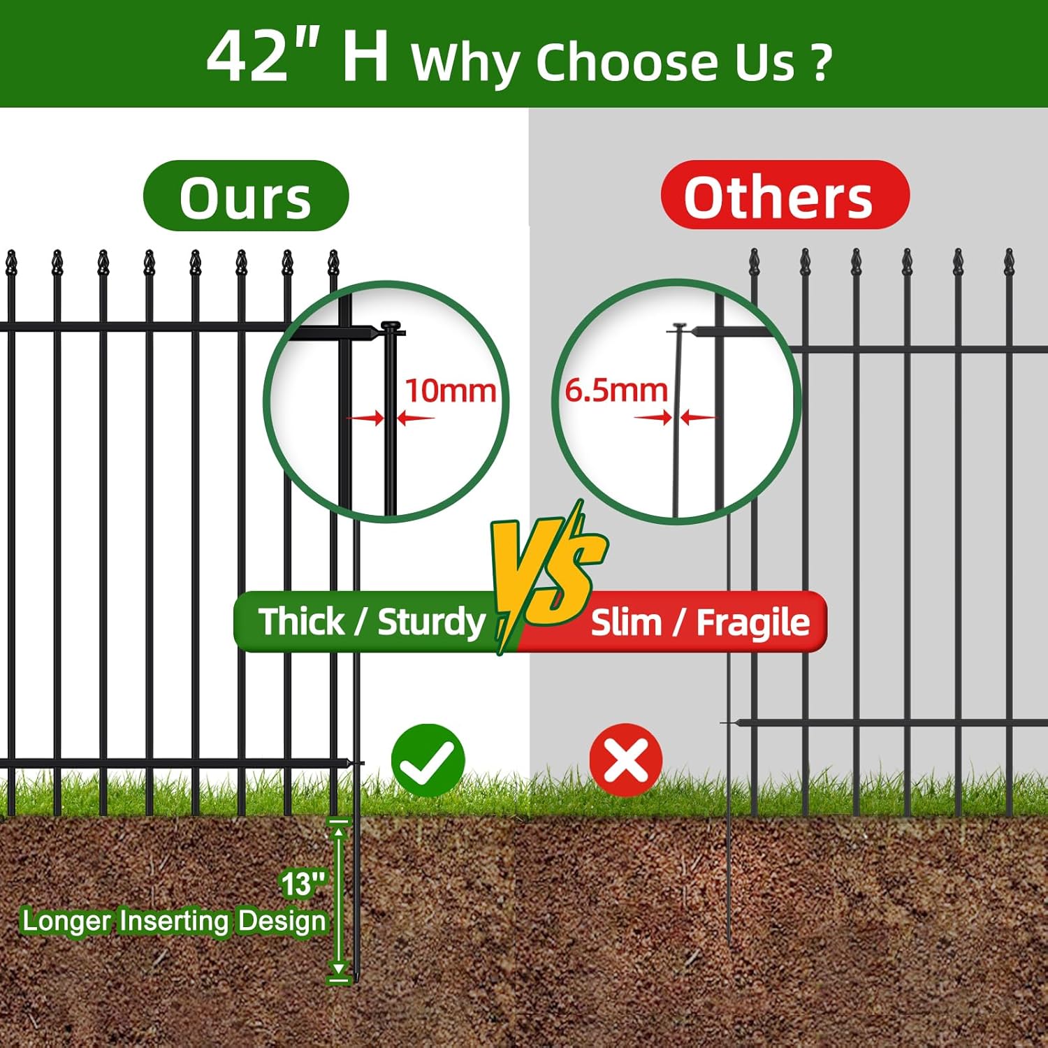 - RUSTPROOF AND DECORATIVE: This garden fencing 42 inch tall with black powder coated finish is rustproof and durable for outdoor using, classically designed Roman Column decoration on top part, which makes fences attractive.