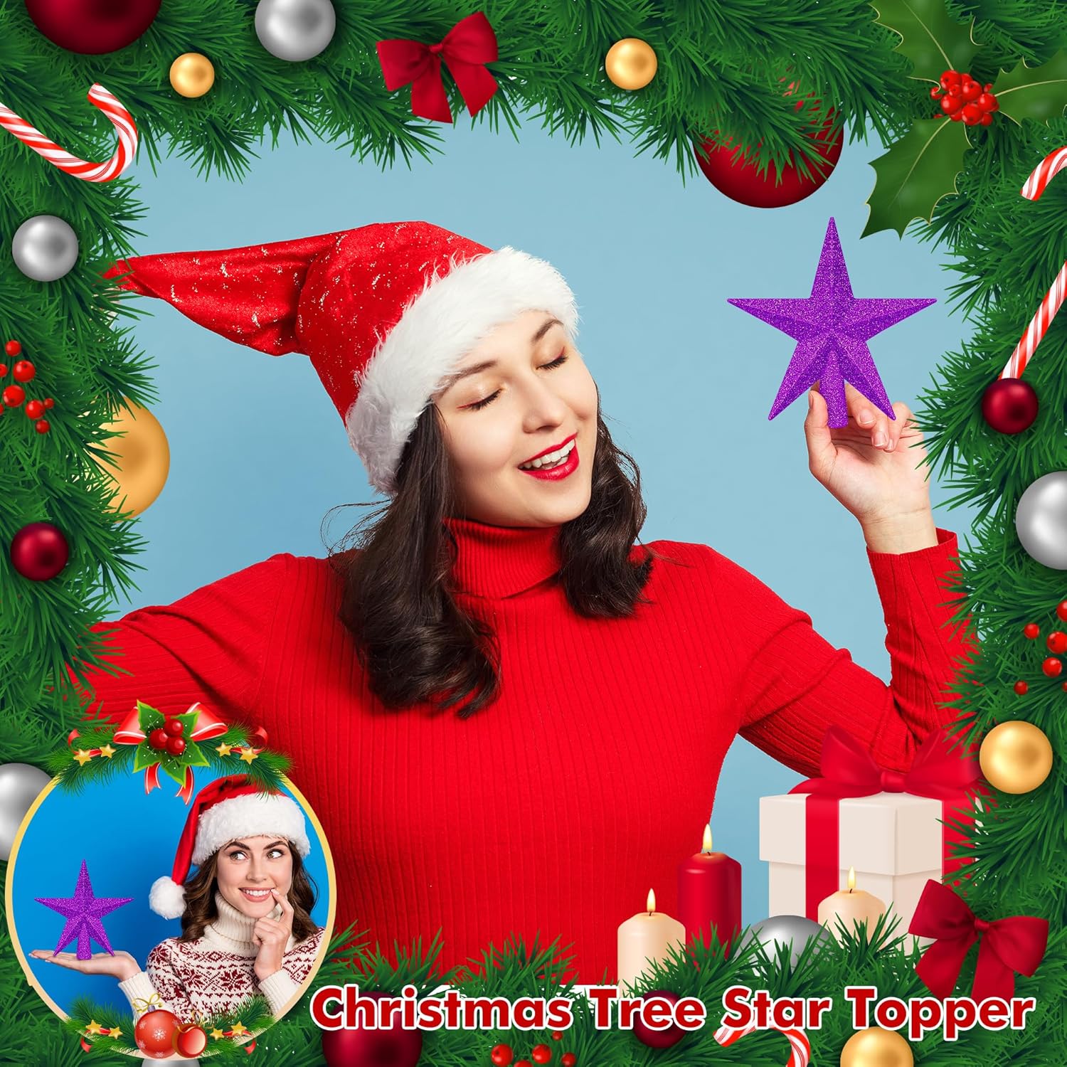 1PCS Christmas Tree Star Topper, Purple 4" Xmas Tree Topper Decorations, Glitter Shatterproof Mini Bethlehem Star Tree Decor, Waterproof Star Tree Topper for Christmas Holiday Indoor/Outdoor Ornament