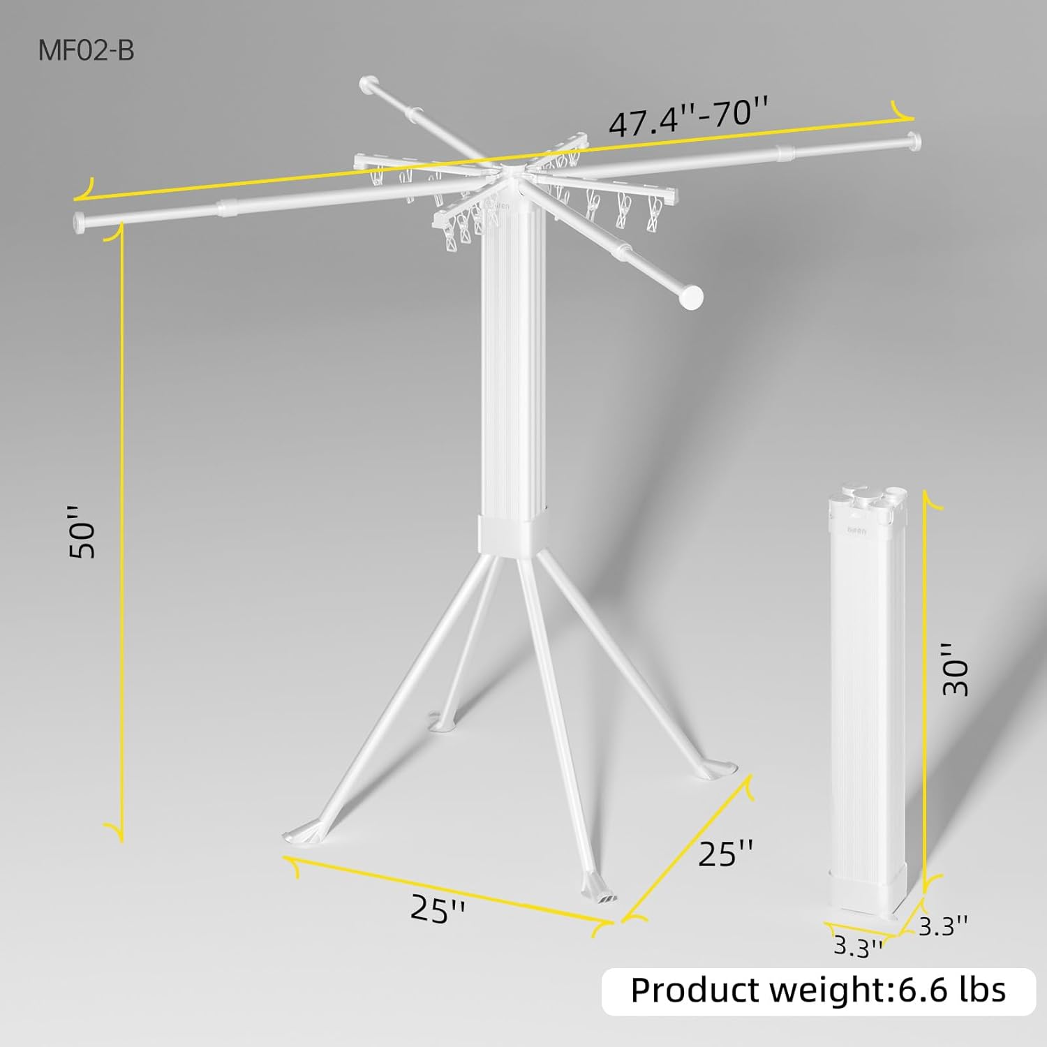 - 【Efficient Space-Saving Design】Our portable laundry drying rack is perfect for small apartments without a dryer. This collapsible drying rack folds neatly into a slim 3.38" x 3.38" x 30" tube, easily stored in a corner, closet, or under the bed. The design keeps your clothing drying rack dust-free during storage, so it’s ready to use immediately after unfolding