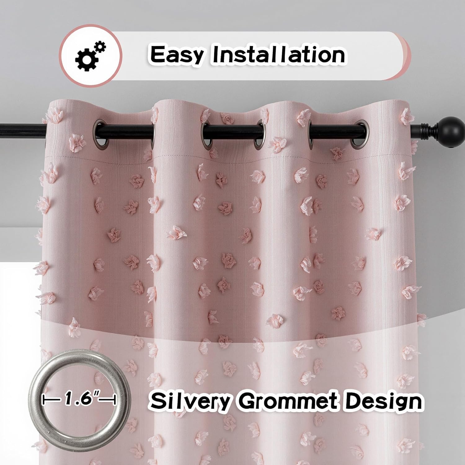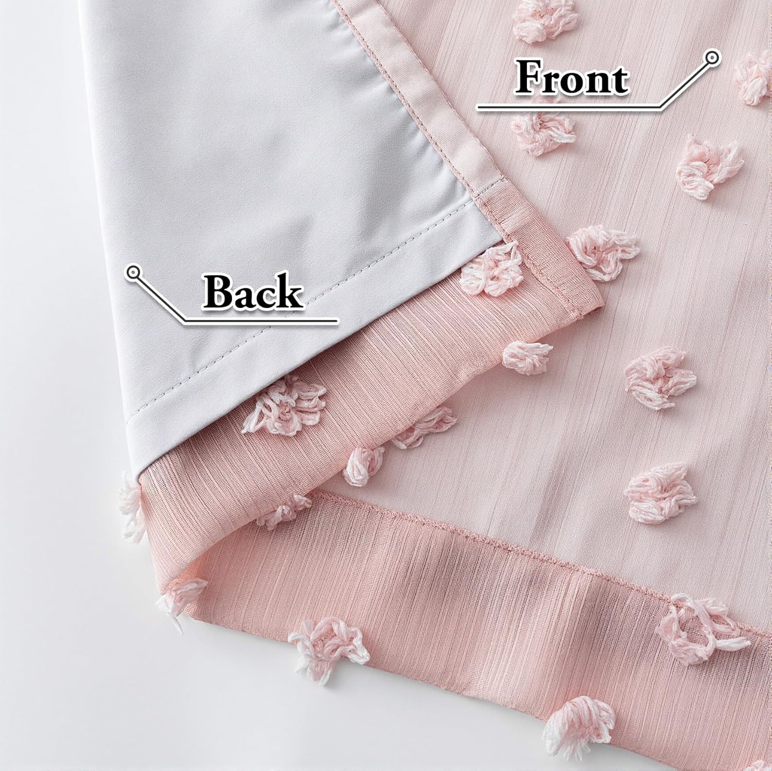 MYSKY HOME 100% Blackout Curtains for Girls Bedroom 84 Inch Long Total Light Blocking Blush Pink Curtain for Living Room 2 Panels Room Darkening Grommet Window Drapes with Pom Pom Sheer 52W x 84L