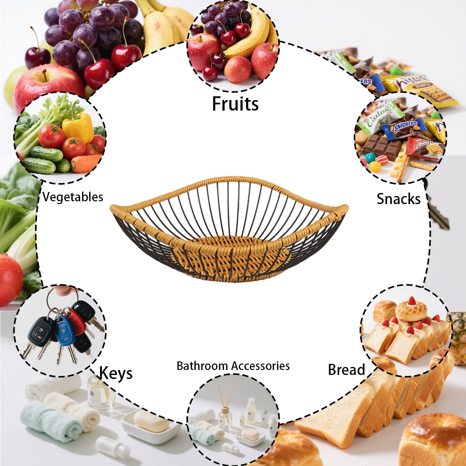 - Durable and Stylish Design - The black fruit basket wire fruit basket countertop fruit basket is made from premium vine woven iron, this fruit plate is designed for long-lasting use while adding a modern touch to any space. Perfect for countertop storage, it keeps fruits, vegetables, and even snacks organized. Enhance your kitchen or living room with this elegant fruit holder stand and table centerpiec