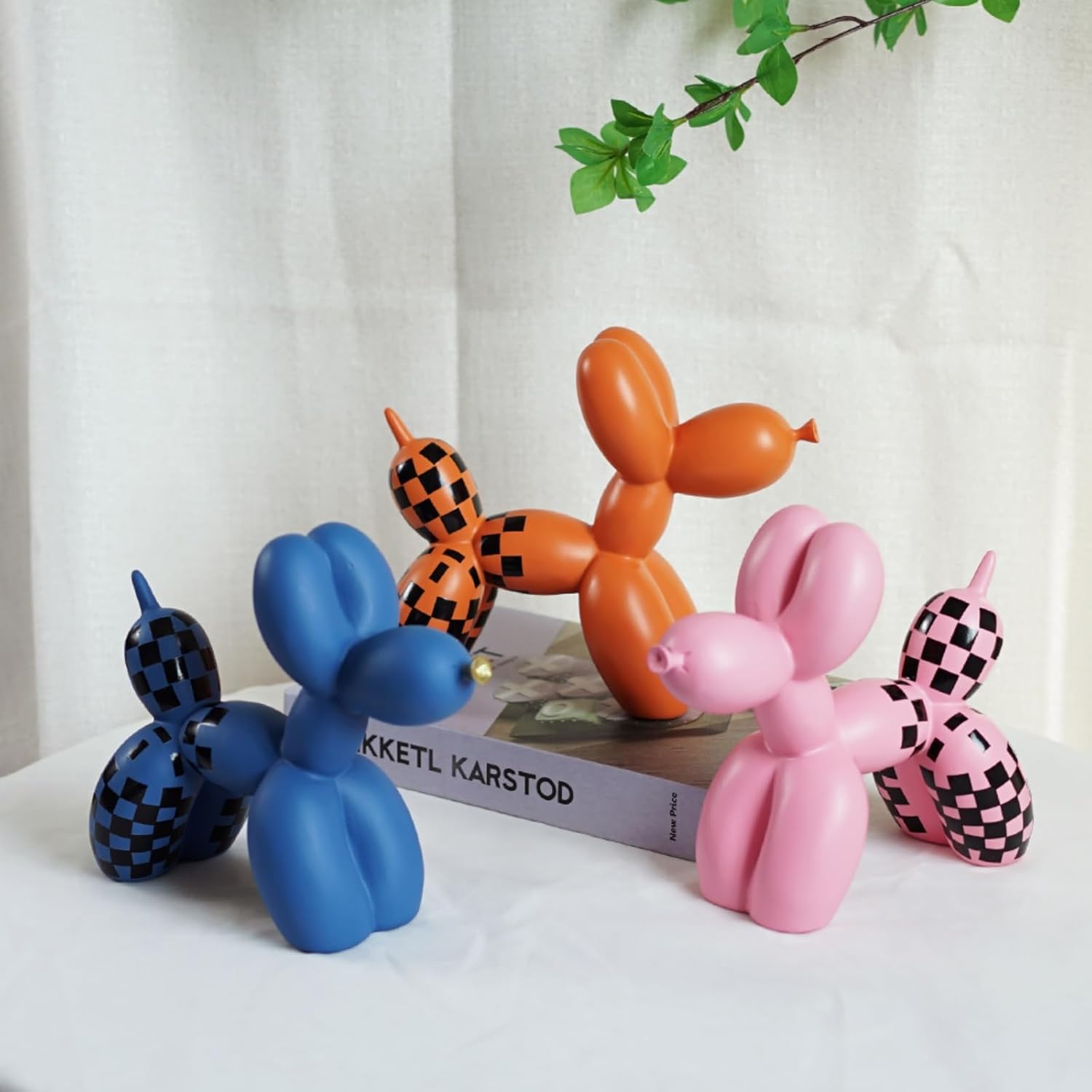 Vilead Resin Balloon Dog Statue with Checkered Pattern,Modern Home Decoration Trendy Animal Art Ornaments,Collection Figurine Bedroom Living Room Office Desktop Sculpture