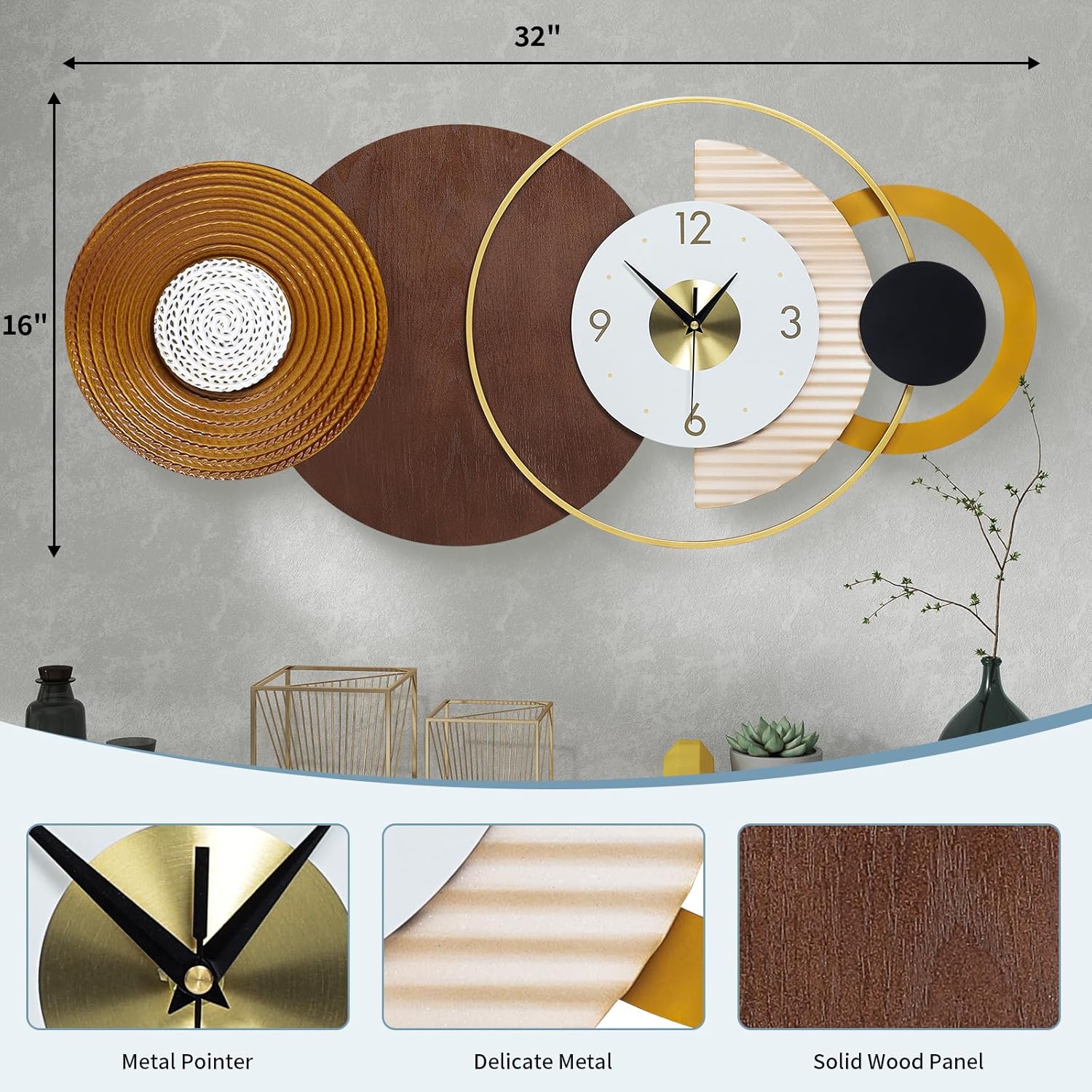 Modern Big Wall Clock Decorative Battery Operated Wall Clocks Large Mid Century Clock for Living Room,Silent Metal Wall Clock Circle Geometric Clocks for Home,Living Room,Bedroom