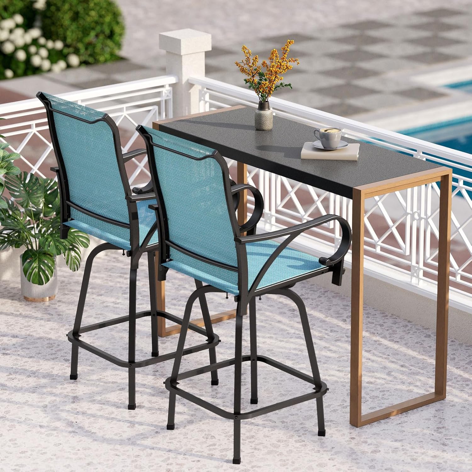 - 360° Swivel Outdoor Bar Stools: Patio bar stools have ergonomic high backrests and premium quick dry Textilene fabric seats (waterproof). Supports 300 lbs per stool
