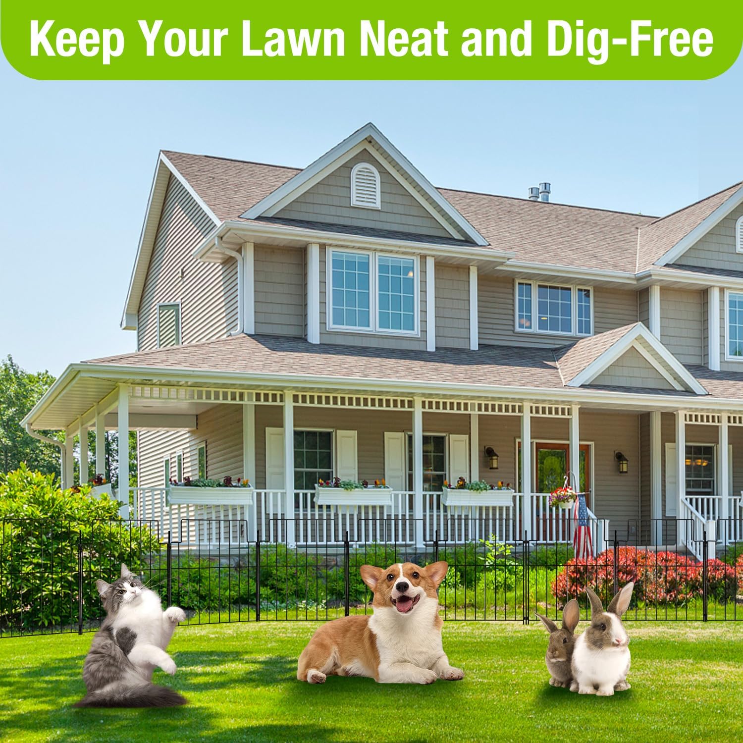 - Multi-Animal Safety Barrier:Protect your plants and pets with this effective dog fence outdoor for yard solution. It acts as a secure animal barrier fence no dig, ideal for keeping small dogs, rabbits, chickens, or other critters away from sensitive garden areas—without compromising the look of your landscape. A perfect blend of safety and style.