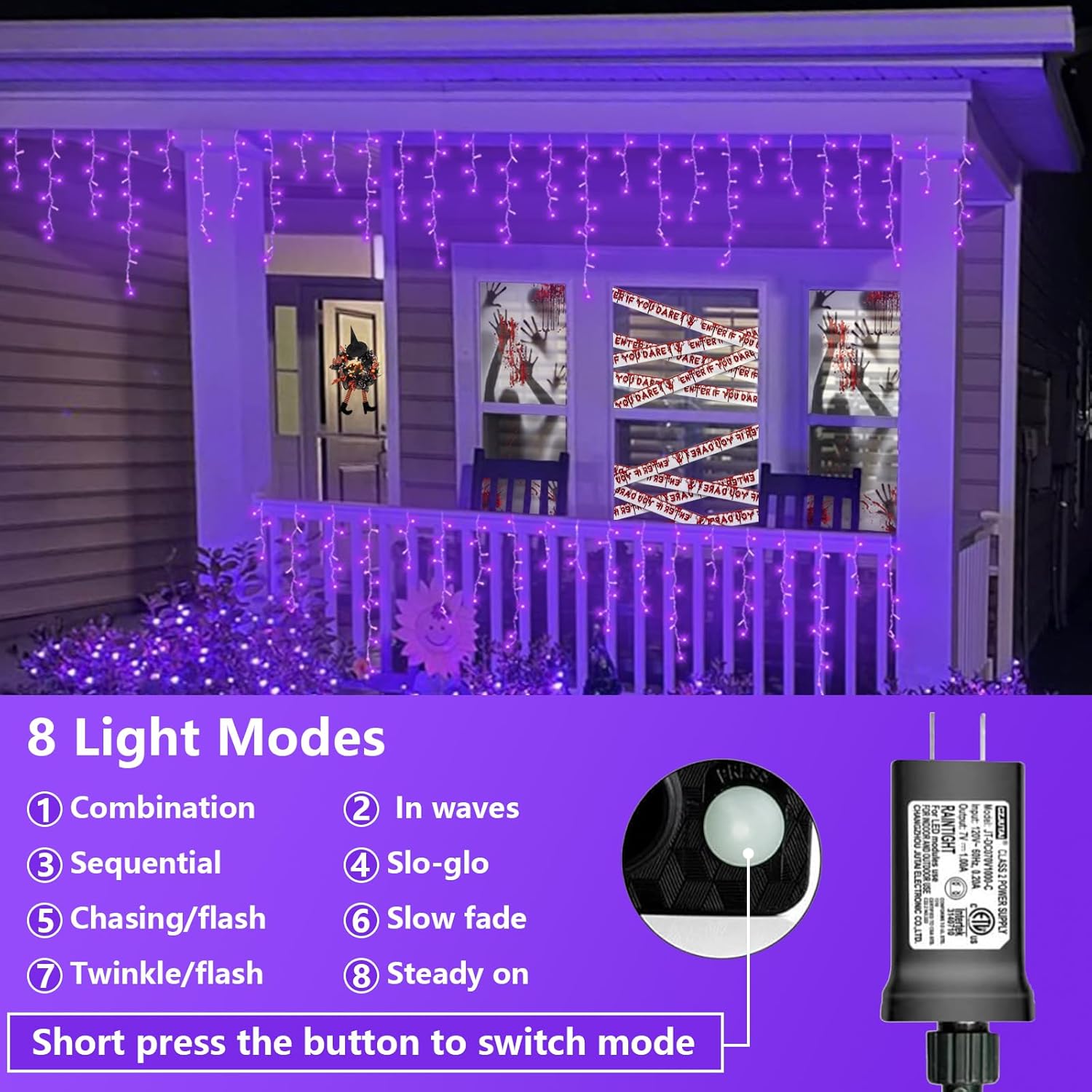 - Connectable Purple Icicle Lights: The 66ft 800 LED purple icicle lights has 160 drop with four different lengths which are enough to display pretty for your halloween decor. When you decorate with our icicle lights, each icicle lights has end-to-end connection, bright a terrifying night. Icicle lights are connectable, it can cover a larger area.