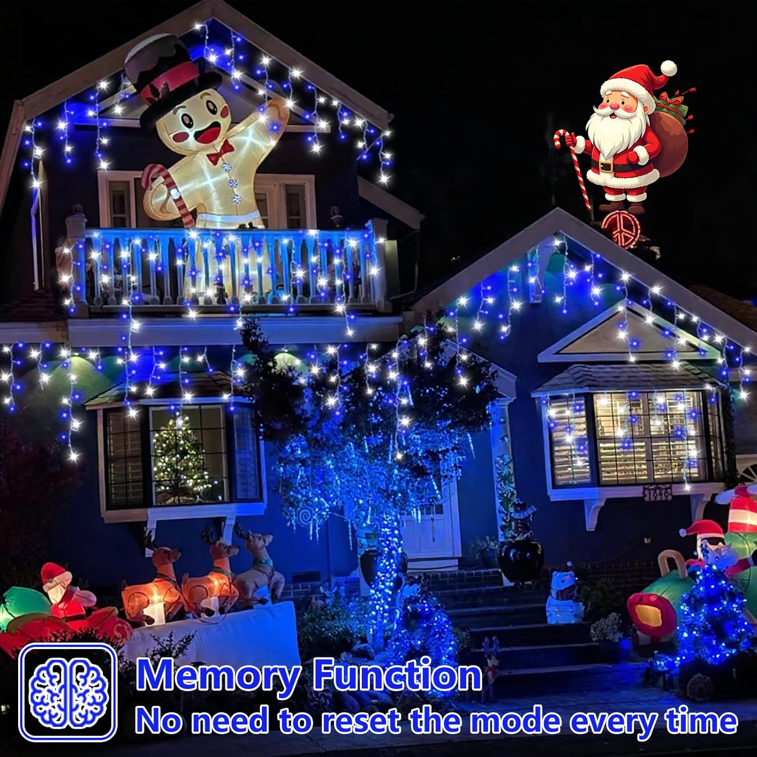QITONG 400 LED Icicle Lights Blue and White