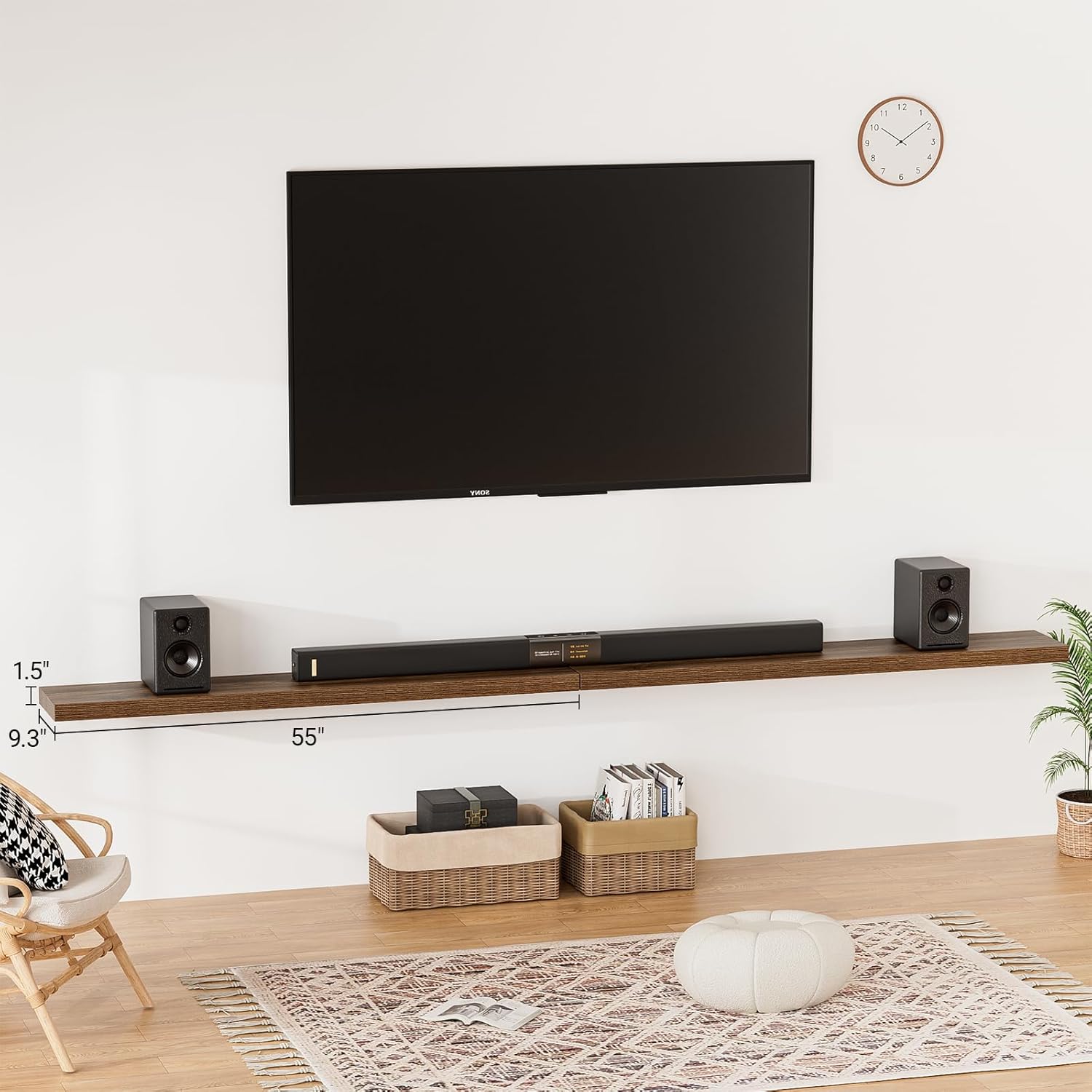 Heimlove 55 Inch Long Floating Shelves for Wall,9.3" Deep Walnut Floating Shelves Set of 2,Large Display Shelf & Storage Shelf,Wall Shelves for Bedroom Living Room Kitchen Office,Wall Mounted Shelf