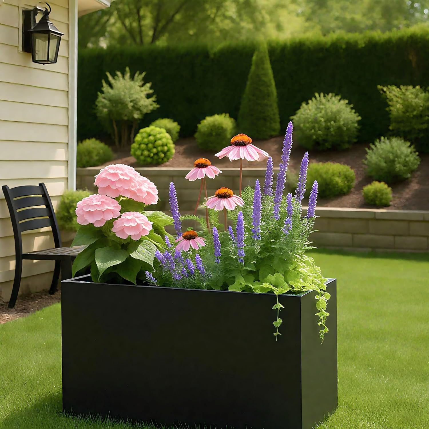 - Modern Black Design: Black rectangular plant design adds a contemporary touch to any space. Versatile for both residential and commercial settings such as homes, hotels, restaurants, stores, and office lobbies. Whether you're growing herbs, flowers, or decorative trees, this large outdoor planter delivers style and function in any space.