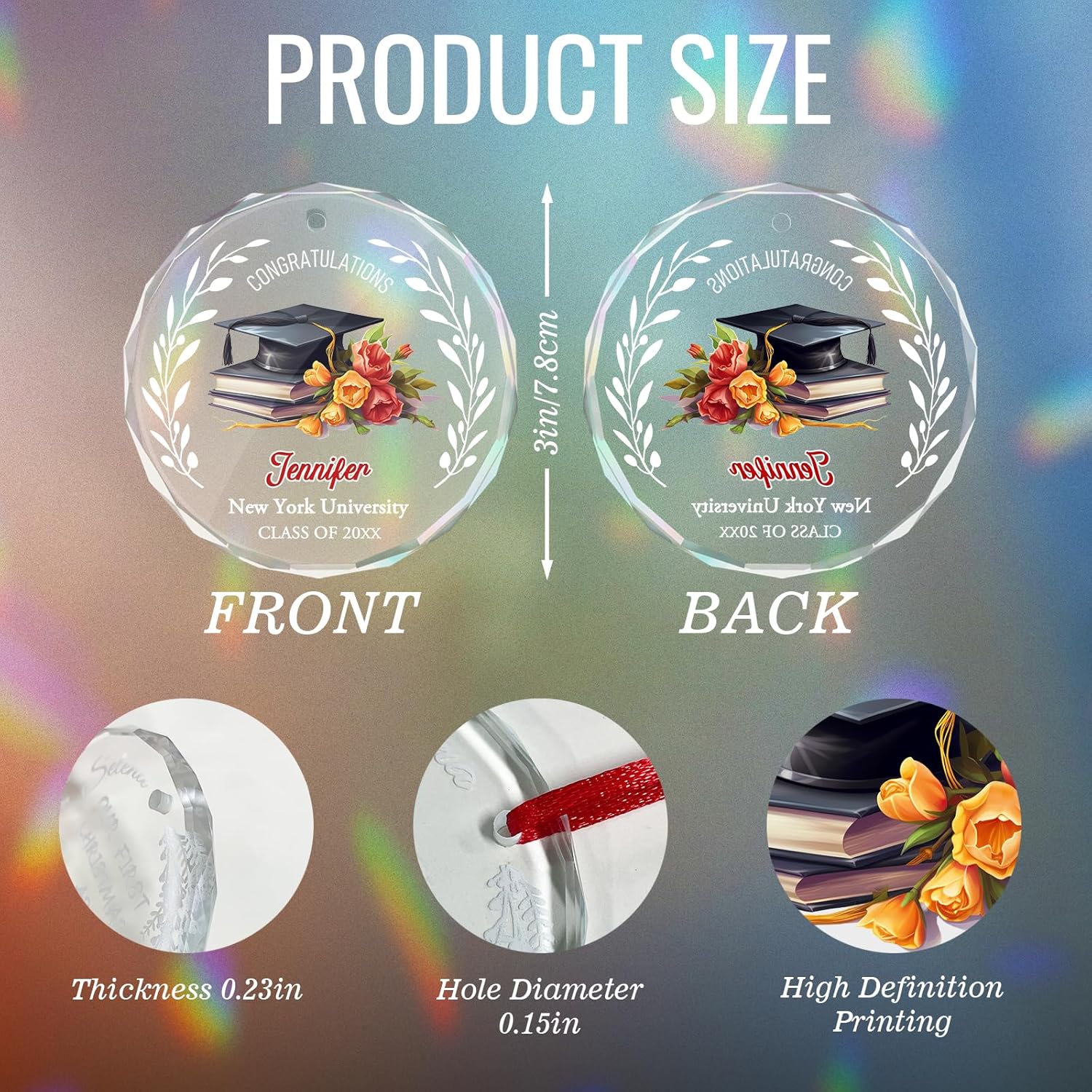 - Graduation Decor: Comes with a red ribbon, this beautiful personalized graduation glass ornament can be hung in any prominent place, desk, office, wall of honor, Christmas tree, doors, windows, walls and anywhere you want to decorate