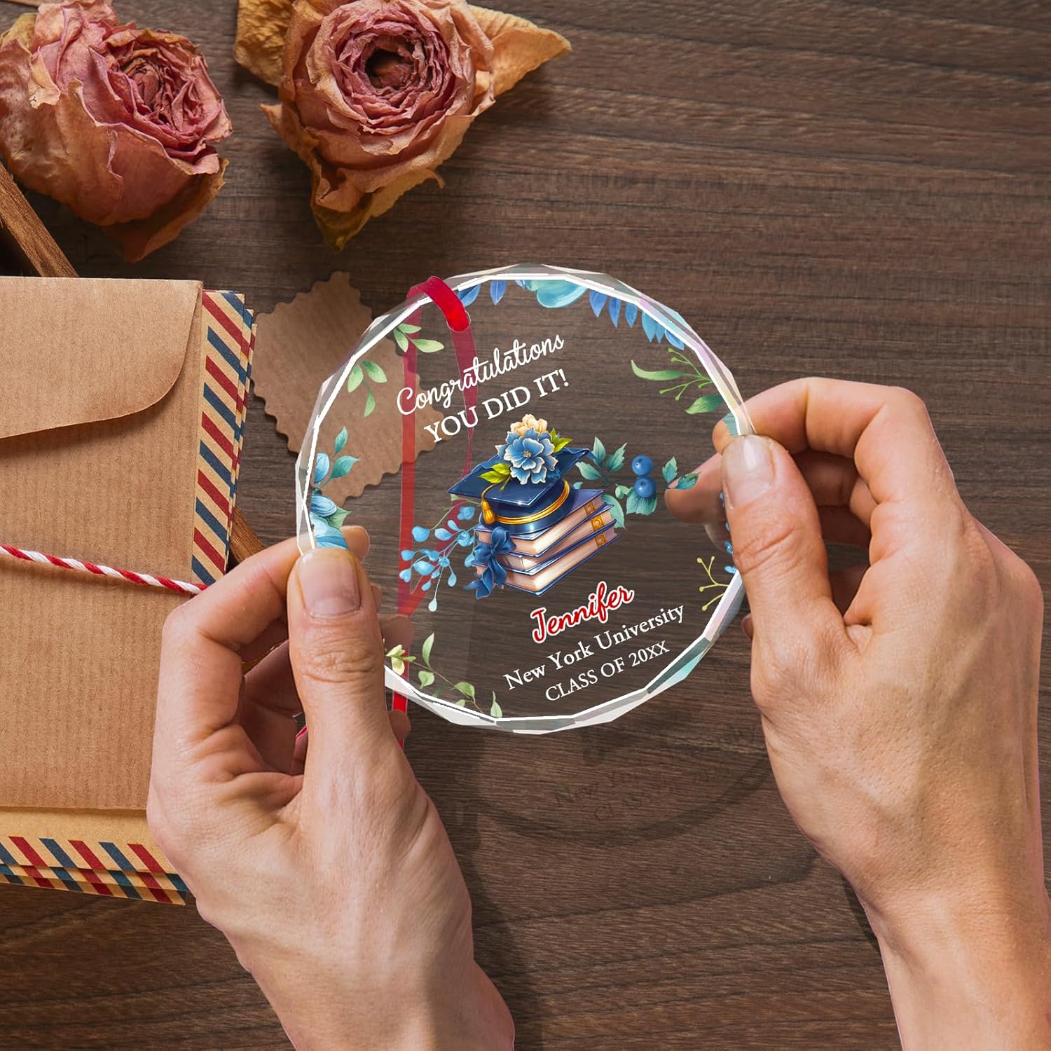 Personalized Graduate Glass Christmas Ornament, Class of 2025 Graduation Picture Ornament Gift for Congrats Son Daughter Friends, Custom Name School Graduation Ornaments Gifts