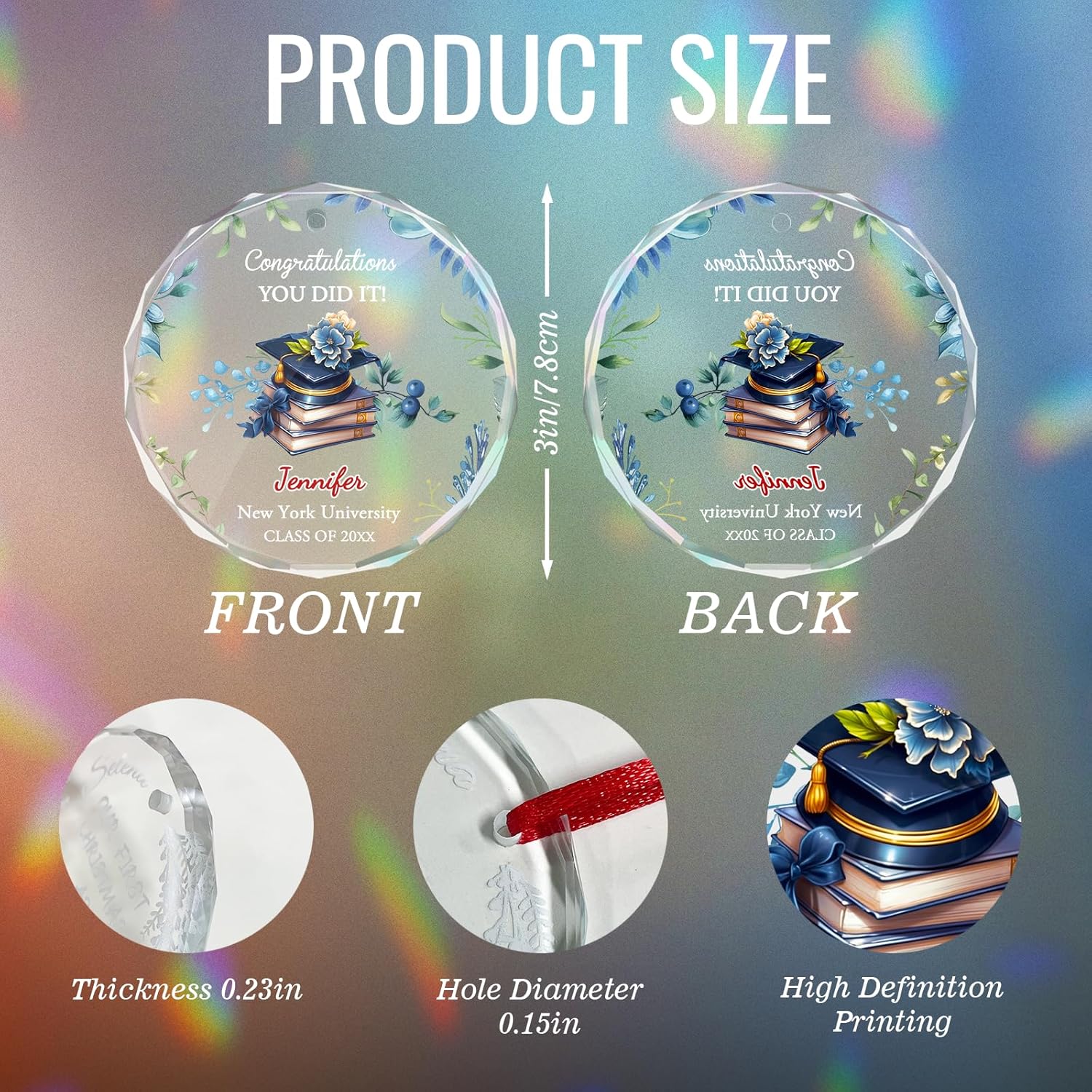 • Graduation Decor: Comes with a red ribbon, this beautiful personalized graduation glass ornament can be hung in any prominent place, desk, office, wall of honor, Christmas tree, doors, windows, walls and anywhere you want to decorate